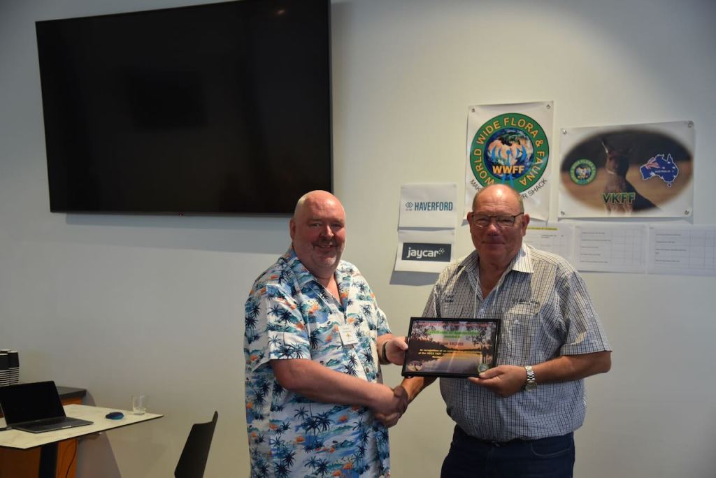 Certificates were also presented to the attending VKFF State/Territory reps, Marija VK5MAZ the VKFF Treasurer, and myself. I was very surprised to receive a magnificent basket of chocolates and nuts.