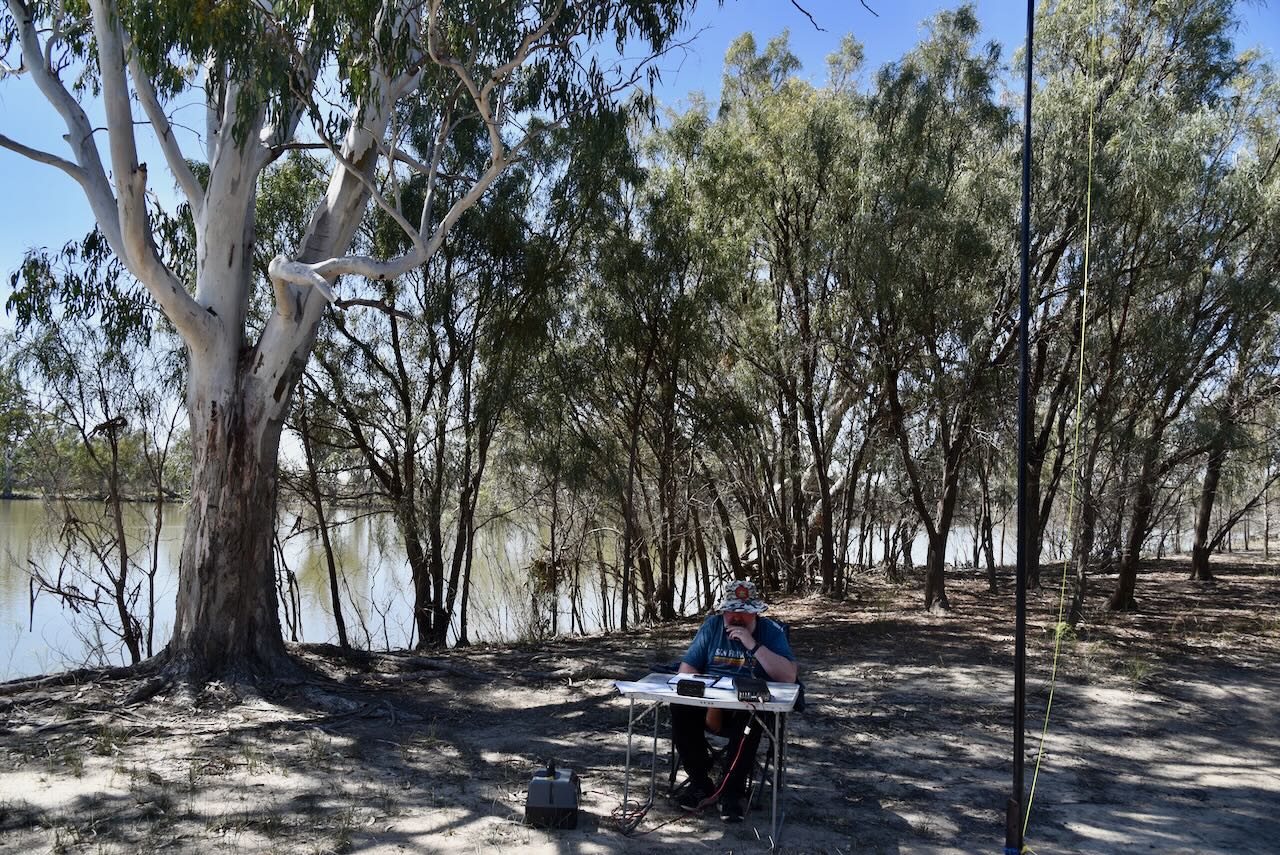 We drove down to one of the campsites alongside of the Murray River and set up our station which comprised the Yaesu FT857, 40-watts output, and the 20/40/80m lined dipole.