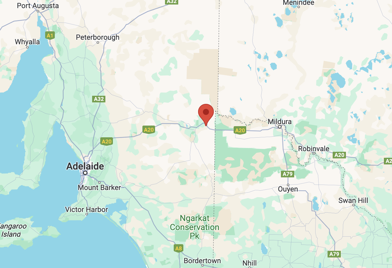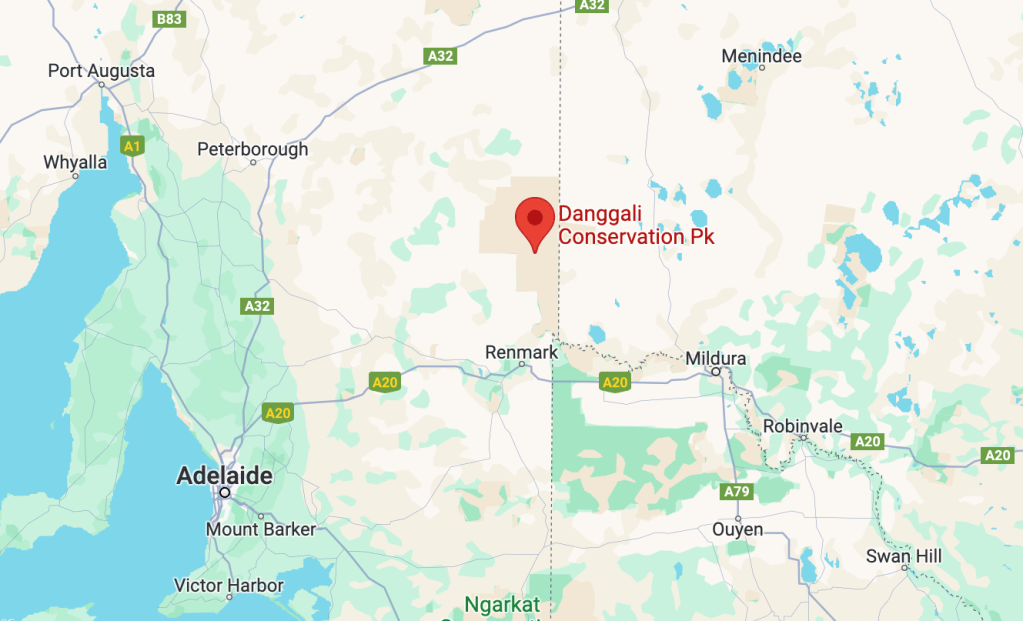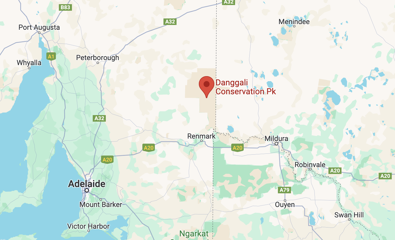 Above:- Map showing the location of the Danggali Conservation Park. Map c/o Google Maps.