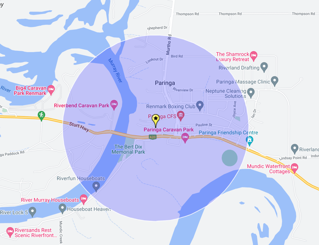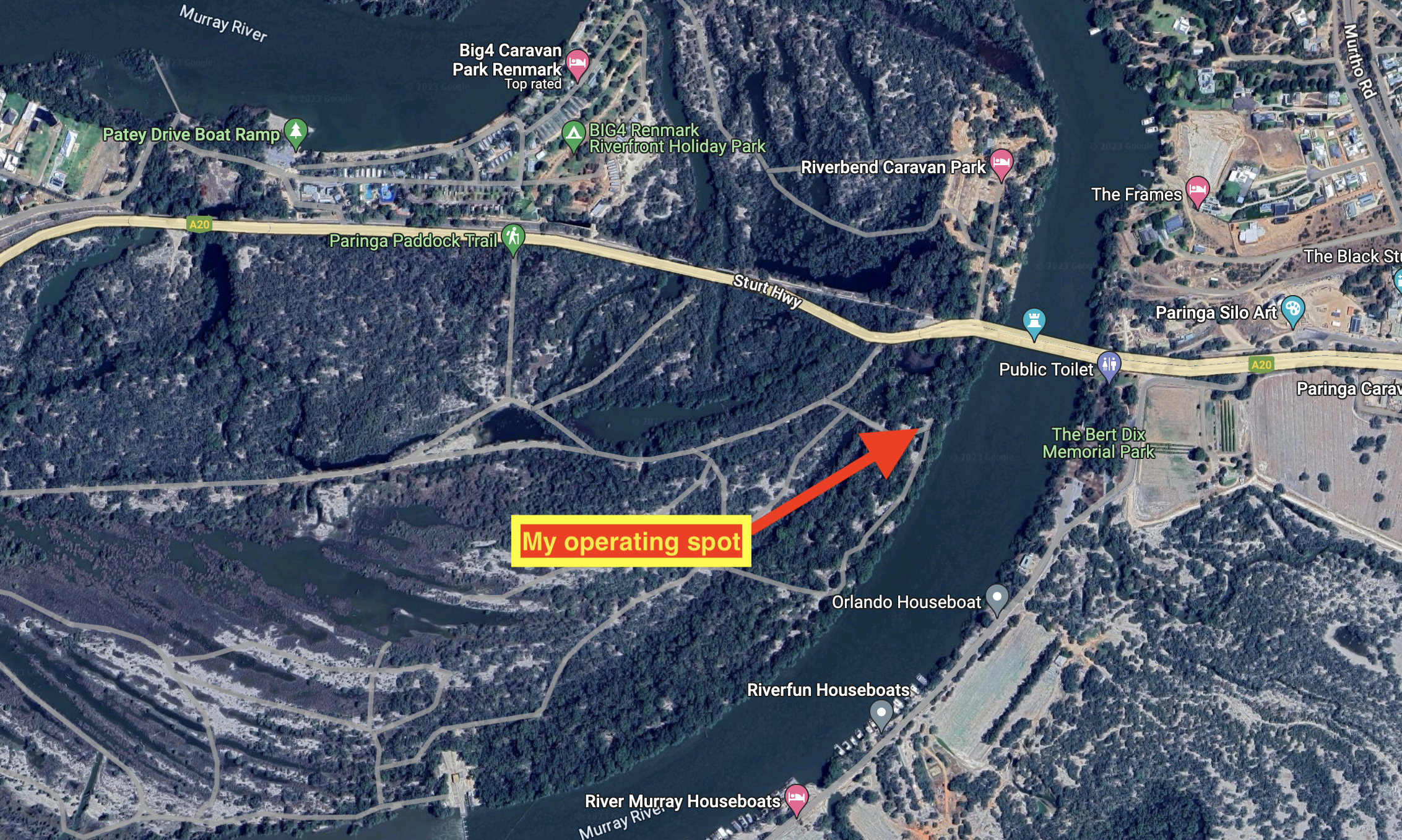 Above:- An aerial view of Paringa Paddock showing my operating spot. Image c/o Google Maps.