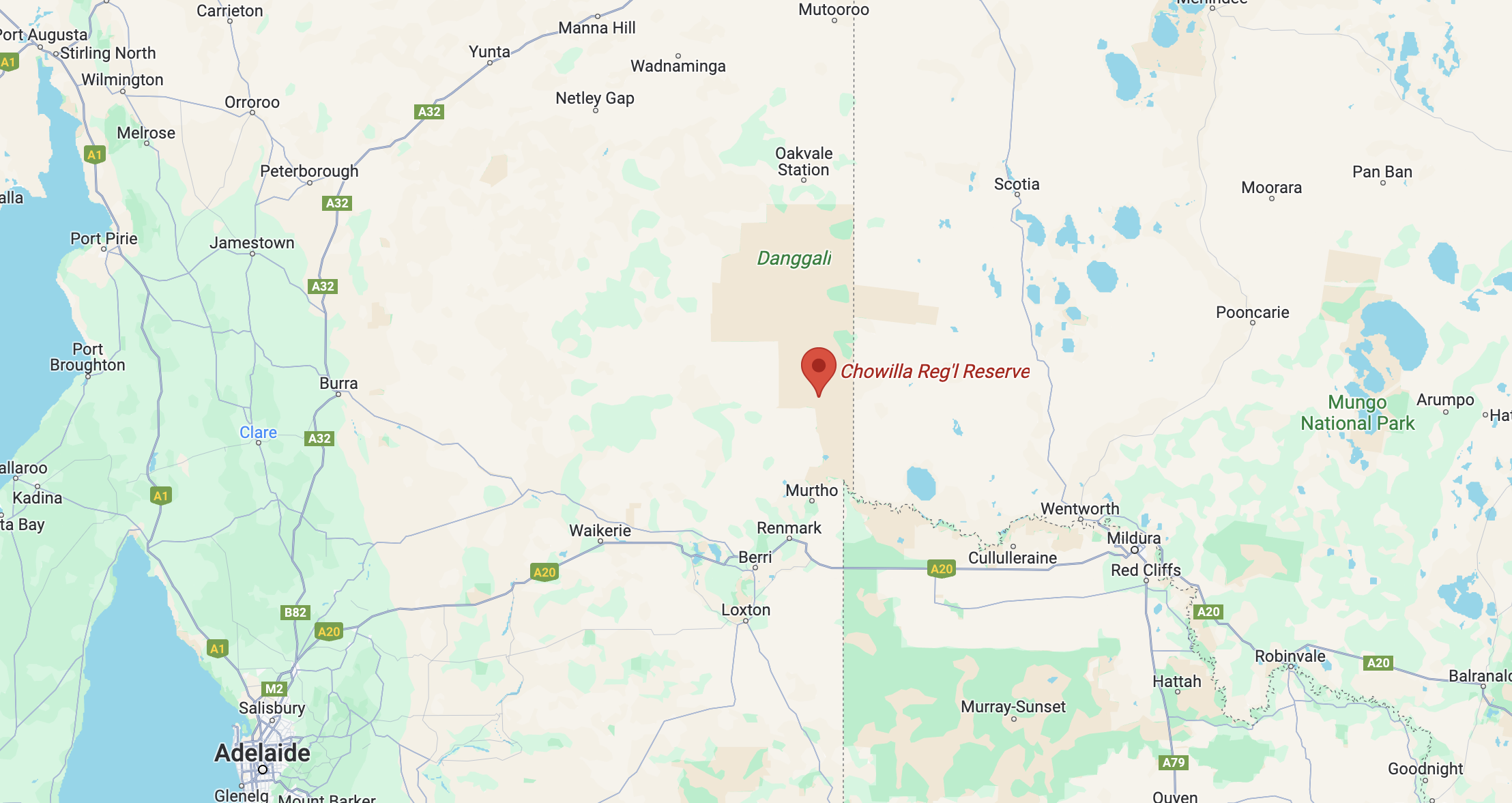 Above:- Map showing the location of the Chowilla Regional Reserve. Map c/o Google Maps.