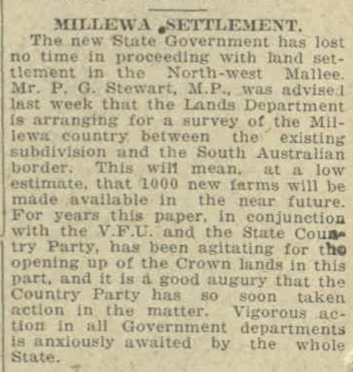 Above:- Article from the Murray Pioneer, Fri 21 Oct 1927. Image c/o Trove.