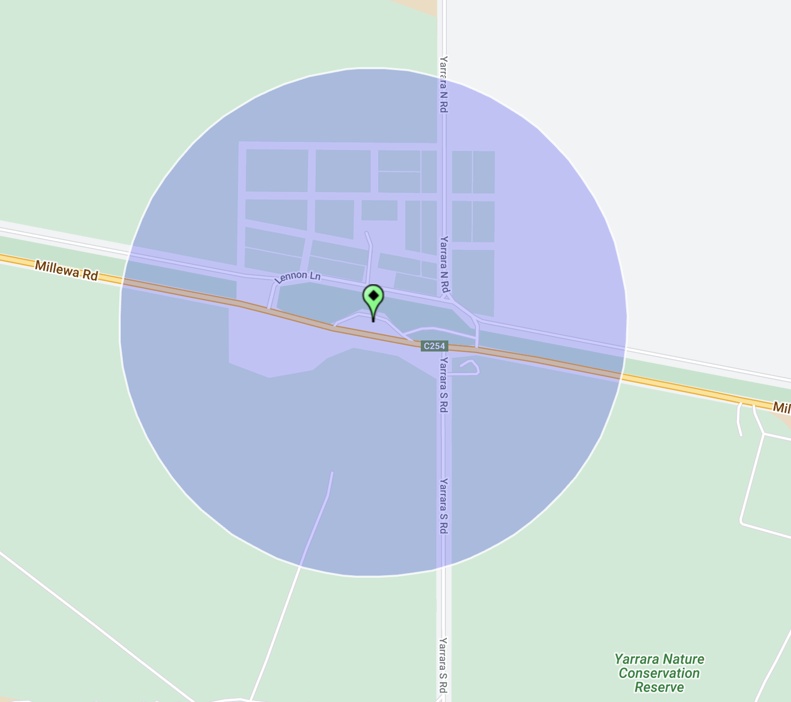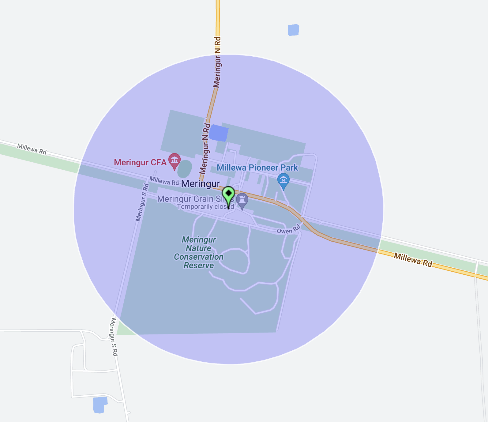 Above:- An aerial shot of the Werrimul Bushland Reserve showing our operating spot. Image c/o Google Maps.