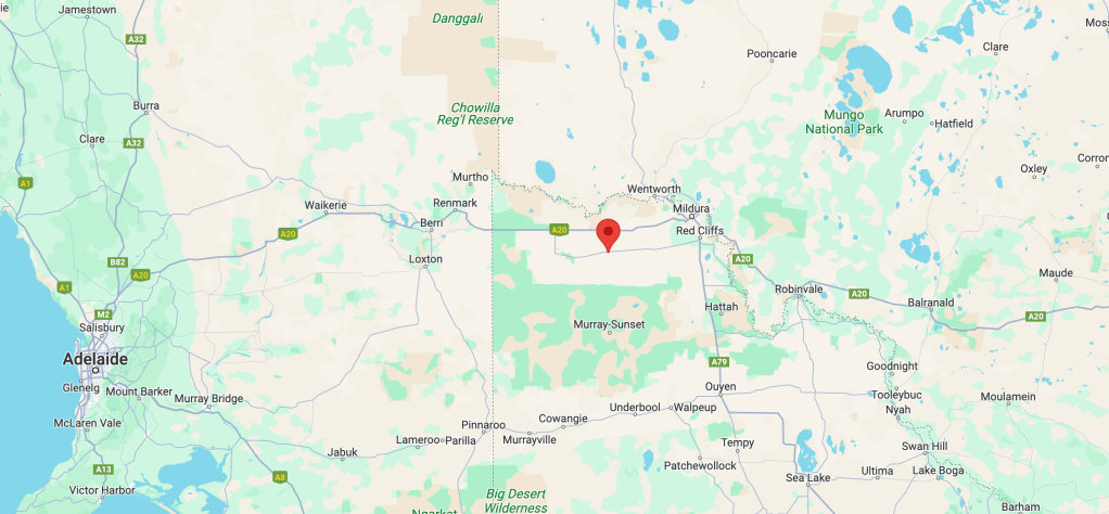 Above:- Map showing the location of Werrimul in northwest Victoria. Map c/o Google Maps.