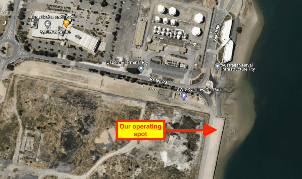 Above:- An aerial view showing our operating spot. Image c/o Google Maps.