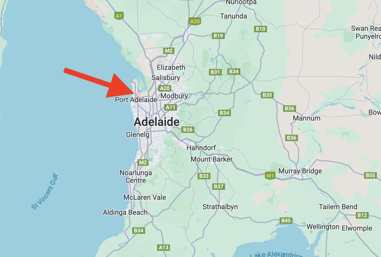 Above:- Map showing the location of Port Adelaide. Map c/o Google Maps.