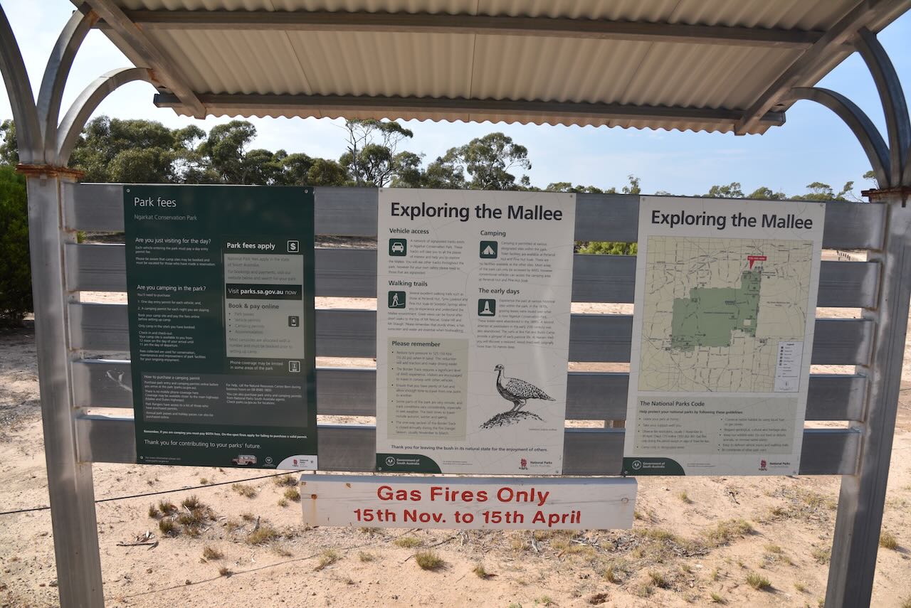 After travelling about 12 km along the dirt on Rosy Pine Road we reached the northern section of Ngarkat Conservation Park. We paid the $13.00 vehicle entry fee to the park at this location.