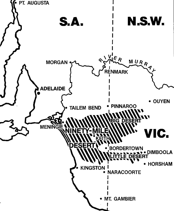 A significant portion of the Ninety Mile Desert was transformed into productive farmland now known as Coonalpyn Downs, by the field experiments of Dr. David Riceman of the CSIRO between 1944-1950.
