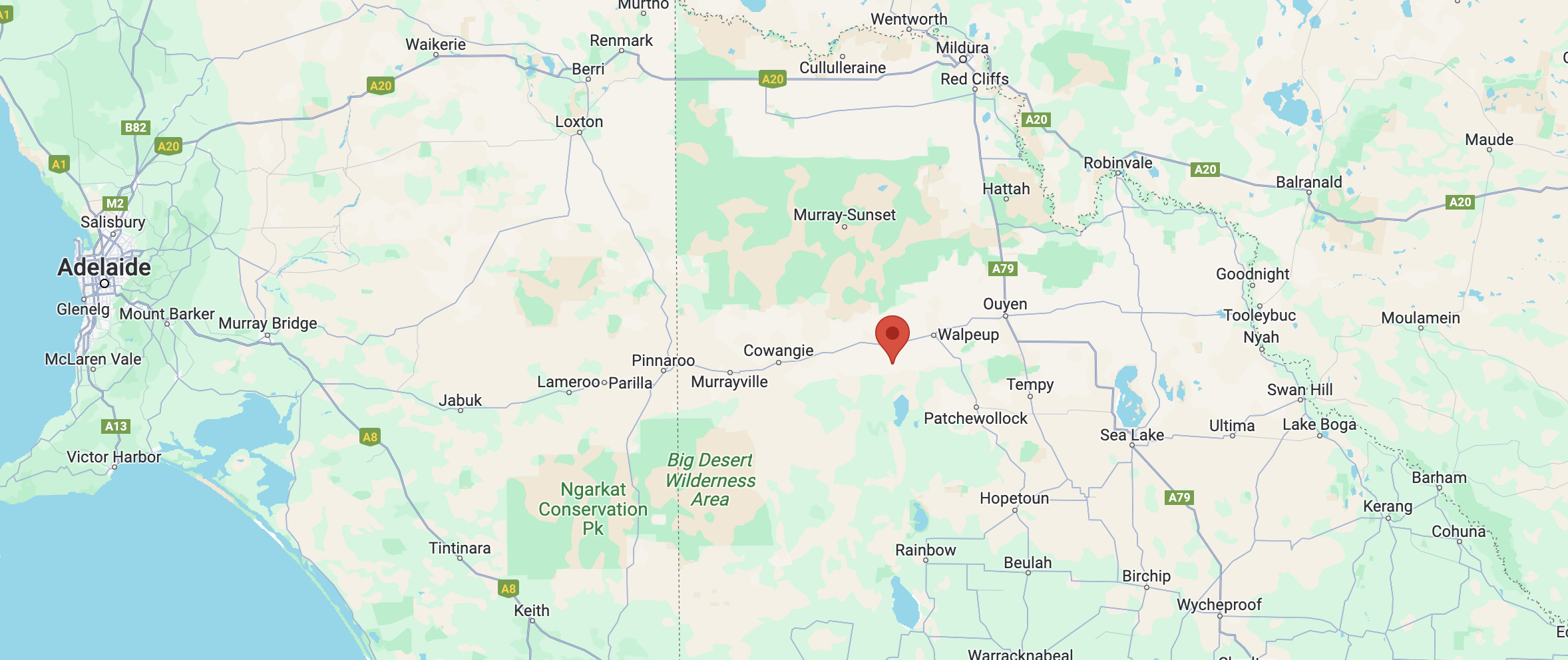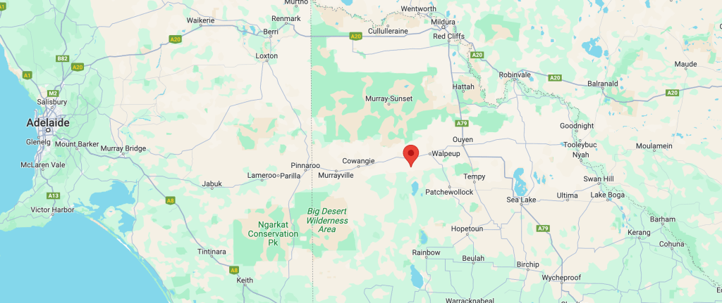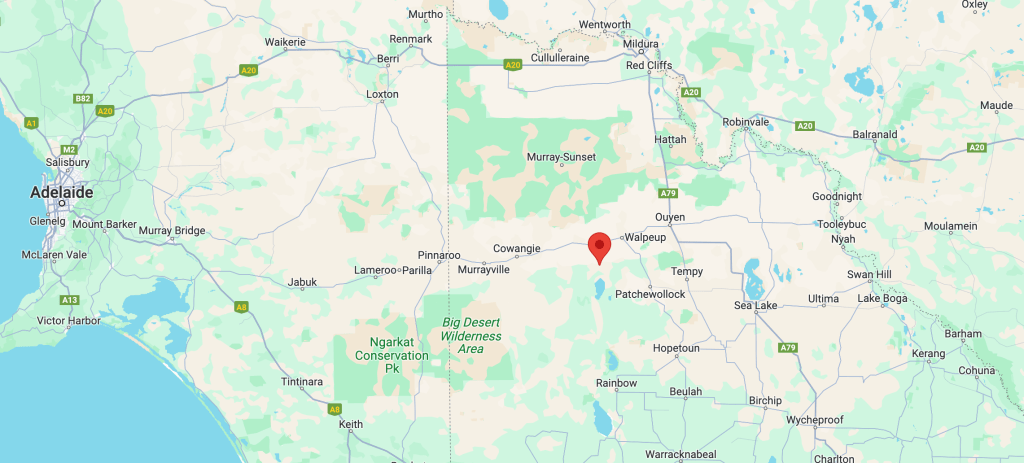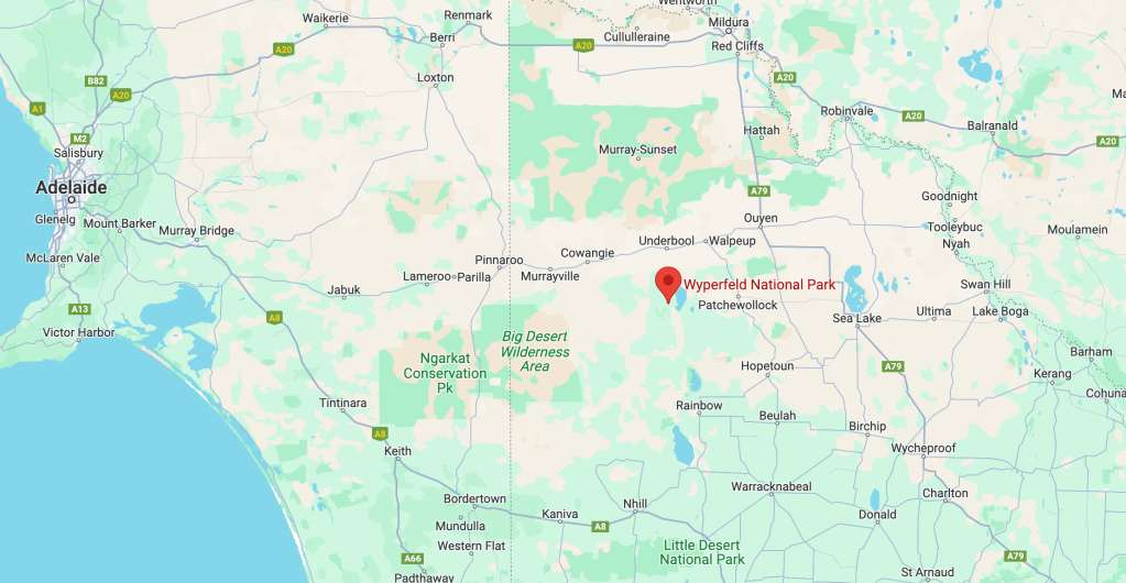 Above:- Map showing the location of the Wyperfeld National Park. Map c/o Google Maps.