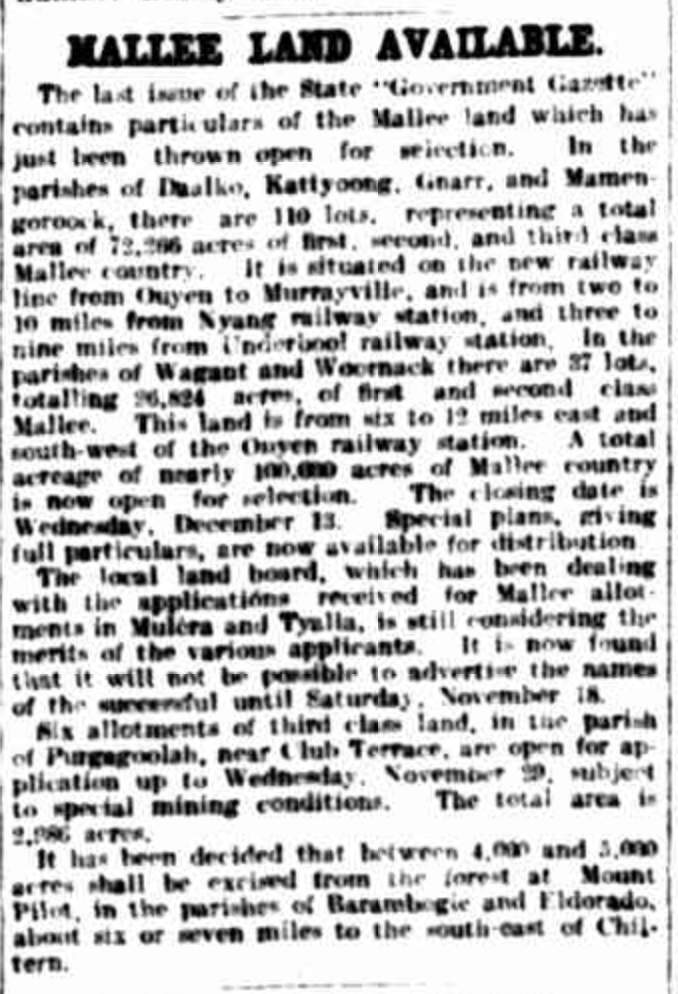 In September 1907, a prominent ornithologist Arthur Herbert Evelyn Mattingley (b. 1870. d. 1950) and two associates Jack Ross and Frank Howe, visited the Wyperfeld area. Mattingly insisted that it should be made a reserve for nature lovers. He described it as a ‘paradise for nature lovers.’ In 1909 he was successful in having about 9,000 acres of land temporarily set aside around the Wonga Basin. At the time Victoria had only three National Parks: Tower Hill, Wilsons Promontory, and Mount Buffalo.