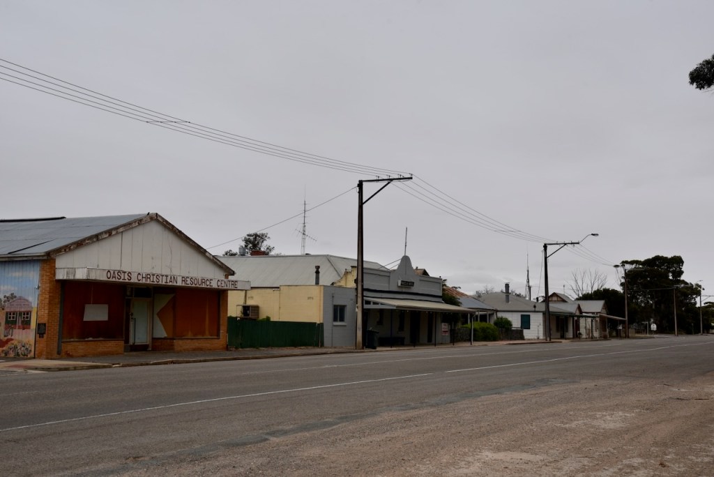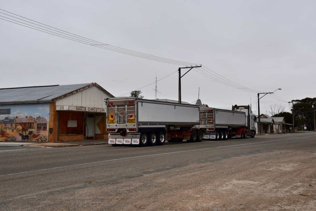 The bulk grain silos at Parilla are located adjacent to the railway line, however, grain is freighted out by the road, as are vegetables.