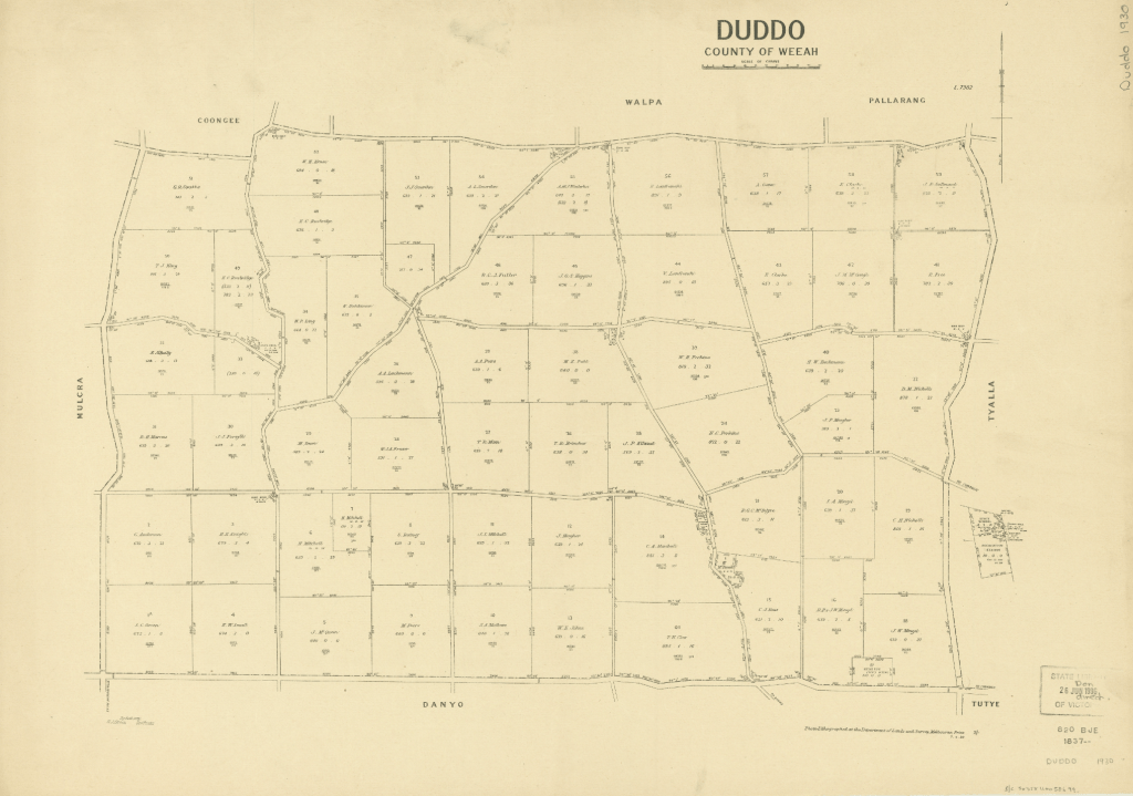 Above:- 1907 Map of Parilla. Image c/o National Library of Australia.