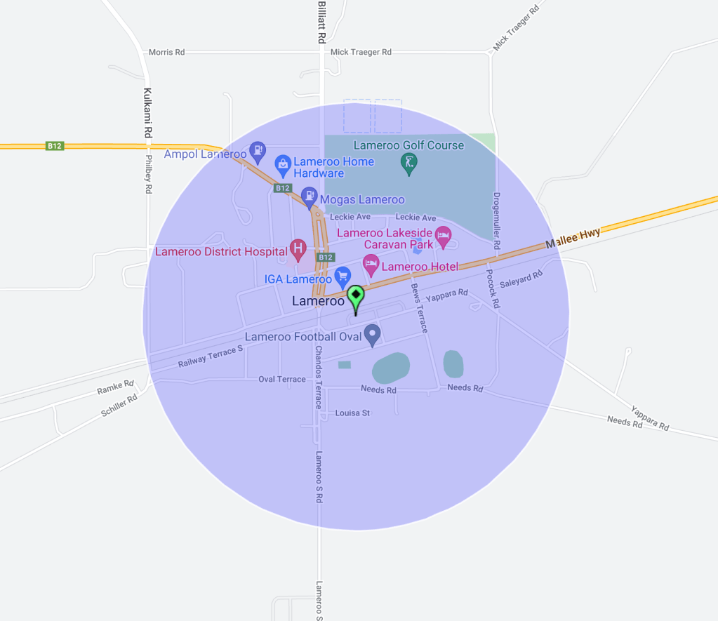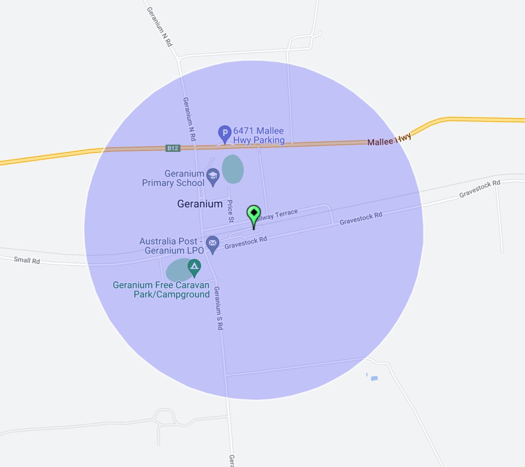 Above:- Map showing the location of Geranium. Map c/o Google Maps.