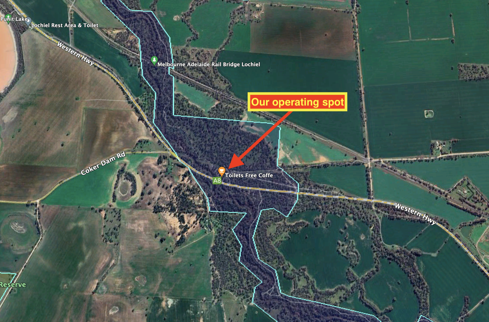 We operated from the rest area on the Western Highway where the Wimmera River crosses the Highway northwest of the town of Dimboola.