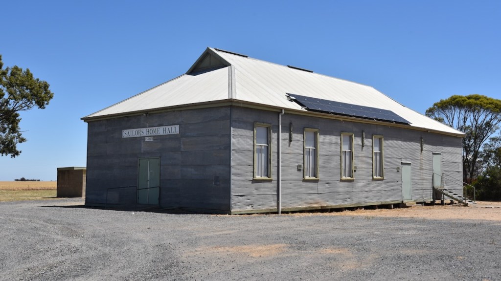 We continued on to the little area known as Sailors Home. It is believed that the area was named after two sailors who arrived in the area during the 1850s. They found employment at nearby Kewell Station as shepherds. The Sailors Home Hall was opened on the 16th day of October 1923. A total of 70 bonds valued at ten pounds each were sold to local farmers to fund the construction of the hall. (Blake 1977) (Dimboola Courier 2024)