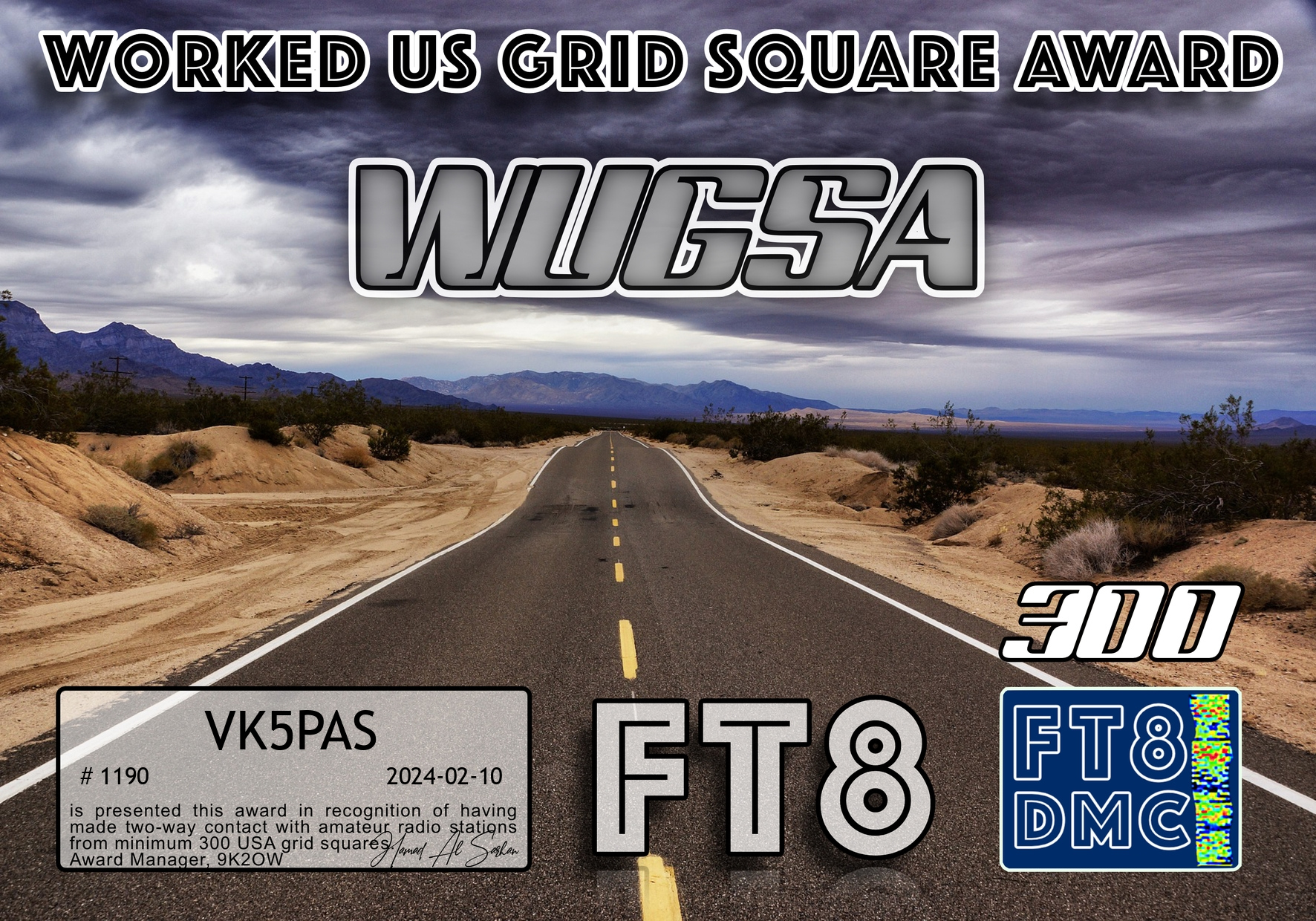 Thank you to all of the FT8 operators and to the various Award Managers.