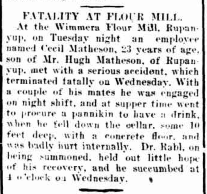 Above:- Article from The Horsham Times, Tue 20 Jan 1920. Image c/o Trove