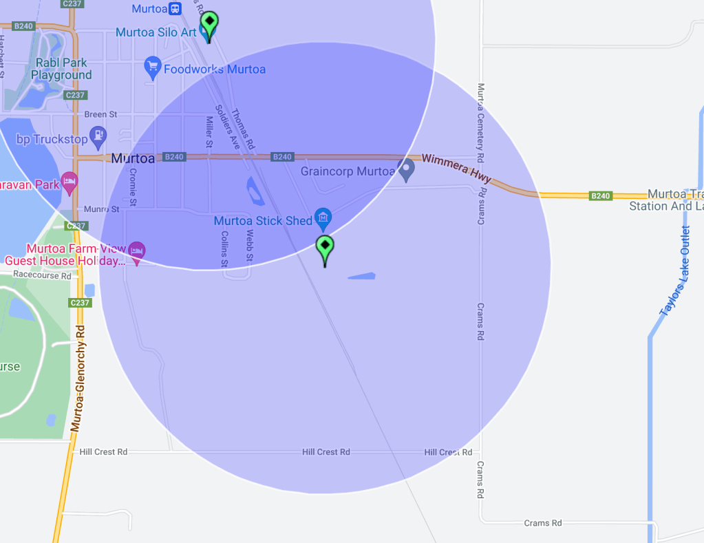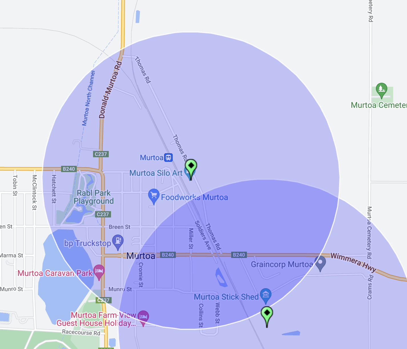 The drive from Big Tottington to our next activation at Murtoa was 67 km in distance and took us through Marnoo and Rupanyup. Murtoa is about 295 km northwest of the city of Melbourne.