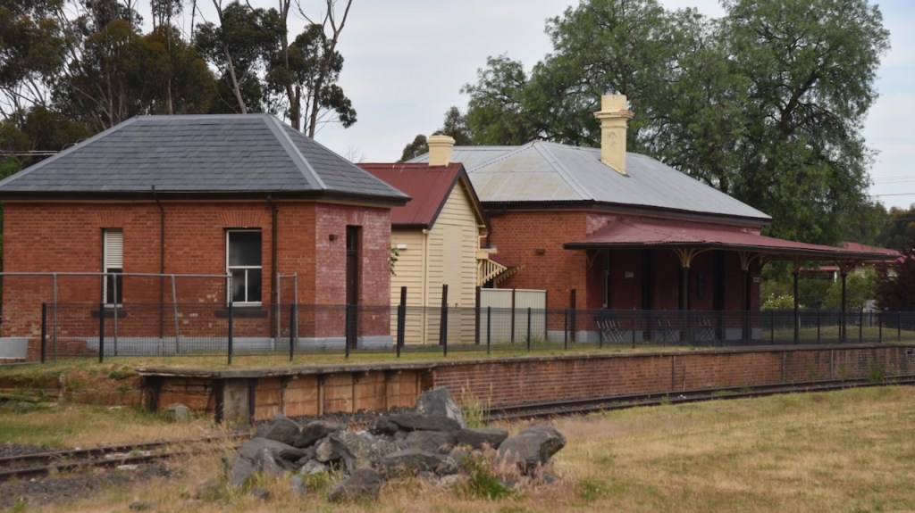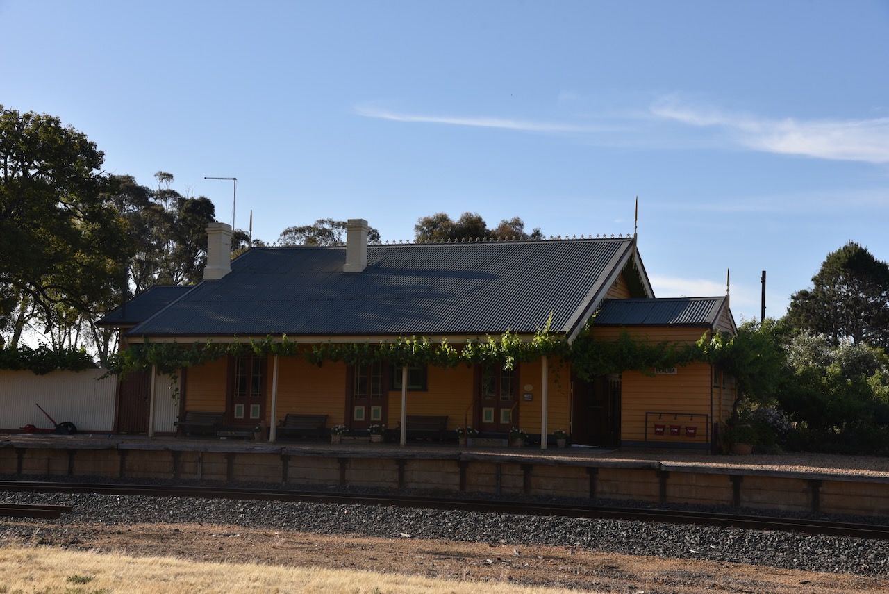 Our first stop after breakfast was the historic Clunes Railway Station which was built in 1874. The contract for the construction of the station was dated 25th September 1874. The building was completed by J. Short, with the cast iron verandah being supplied by Robinson Brothers. The water tower, crane and can goods shed were demolished in the 1980s. In 1993 the last passenger train passed through Clunes. In June 2010 it was announced that the Clunes Railway Station would reopen. (Waking up in Geelong)