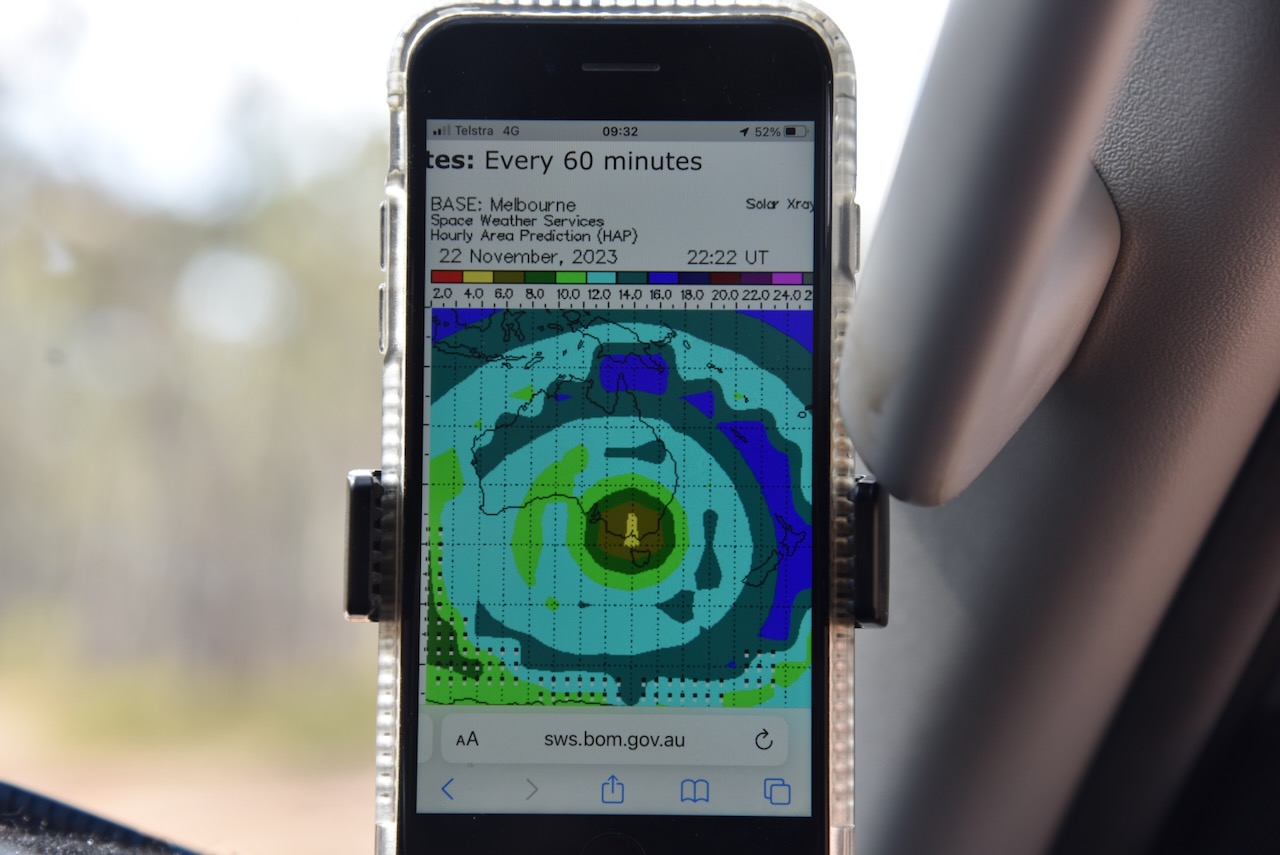 We parked right alongside the silo and operated from the 4WD, running the Icom IC-7000, 100 watts, and the Codan 9350 antenna with the 1.5-metre stainless steel whip.