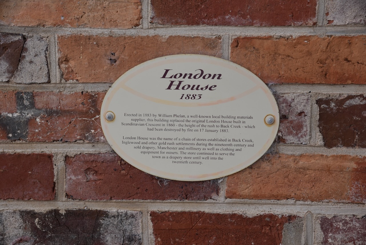 London House was built in 1883 by William Phelan, a well-known local building materials supplier. The building replaced an earlier London House that was built in 1860 in Scandinavian Crescent. It was destroyed by fire on the 17th day of January 1883. London House was the name of a chain of stores established in Back Creek, Inglewood and other gold rush settlements during the 1800s. The stores sold drapery, manchester, clothing, and millinery to miners.