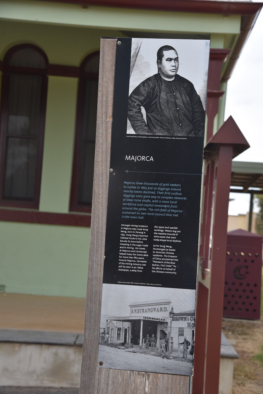 The largest mine in the Majorca district was the Kong Meng mine. Lowe Kong Meng was born in Penang in c. 1830. In 1853 he emigrated to Australia and tried his hand at gold mining for about 3 months. Unsuccessful and disillusioned he left Australia, but by 1854 he returned to Australia and opened a business in Melbourne, importing goods for Chinese miners. By the mid-1860s, Meng was the largest single supplier of goods for Chinese miners in Victoria. (Goldfields Guide 2024)