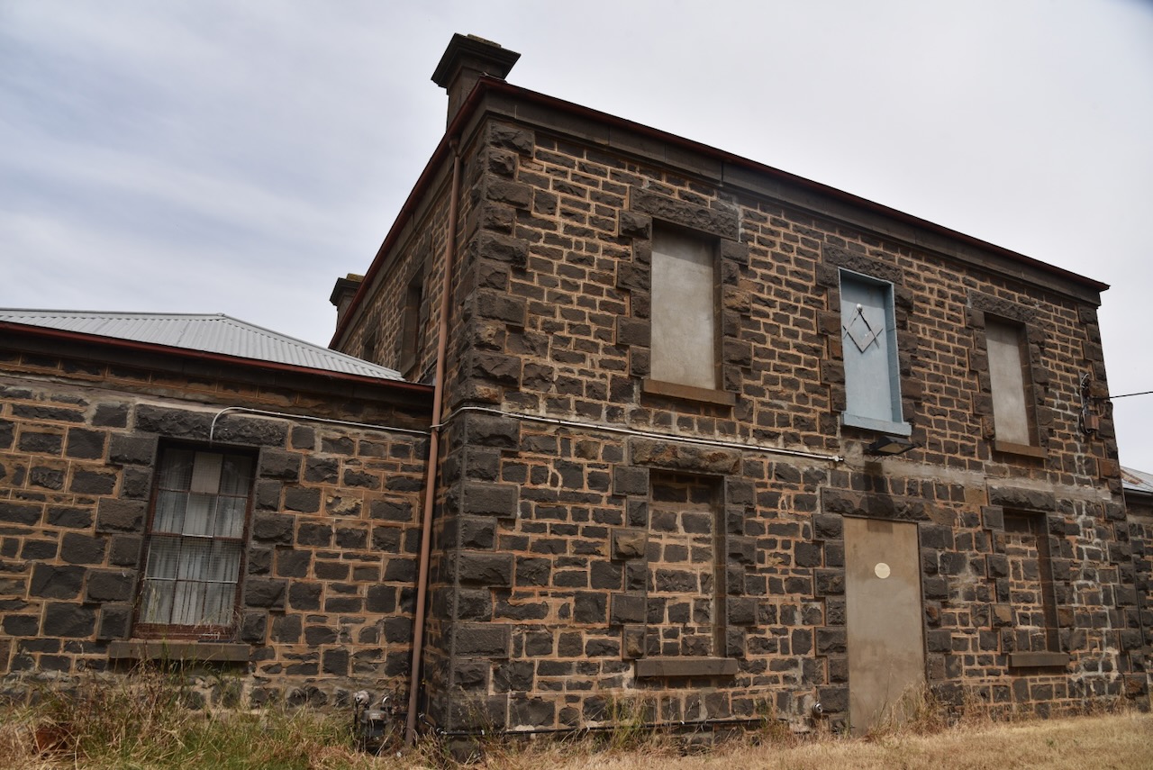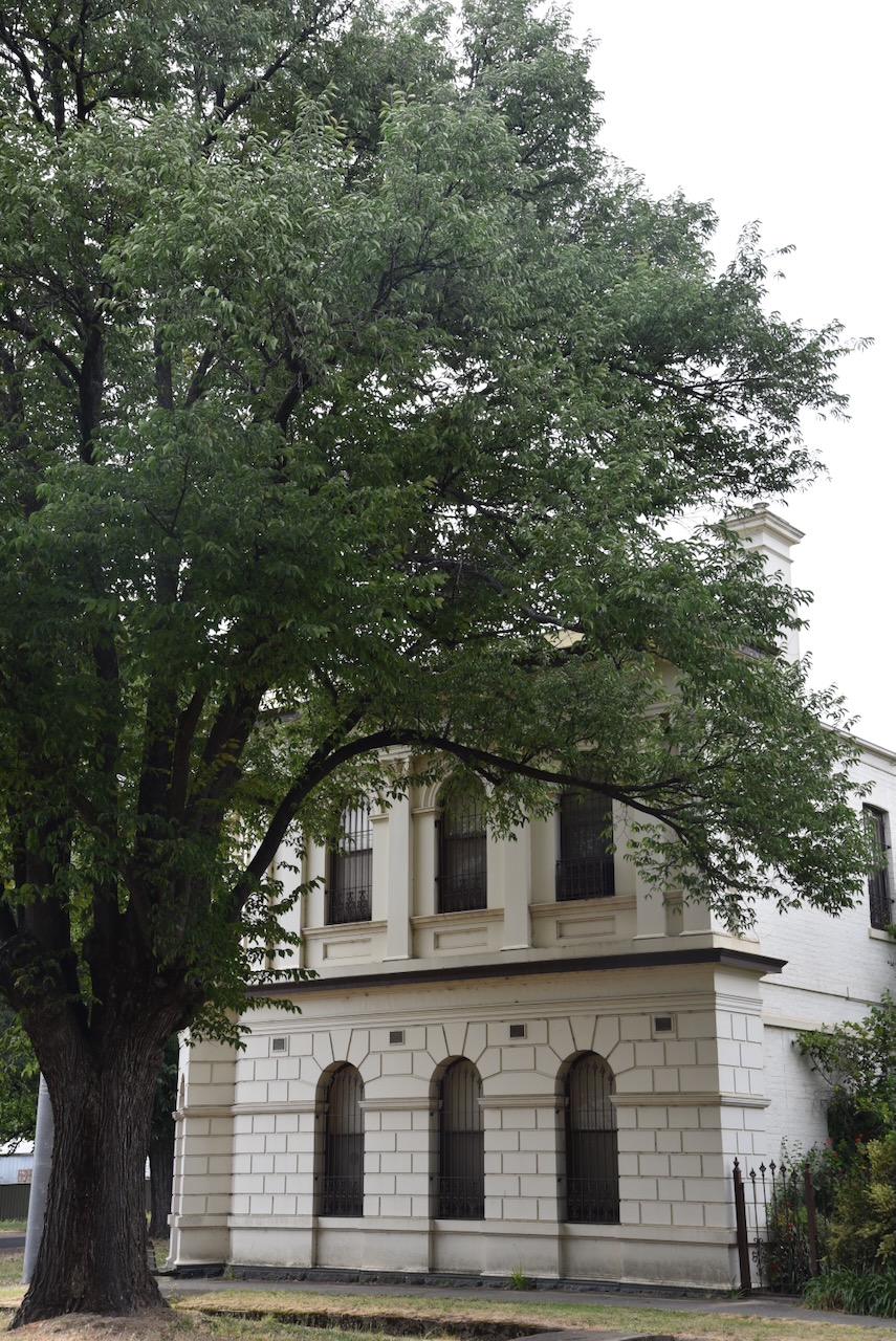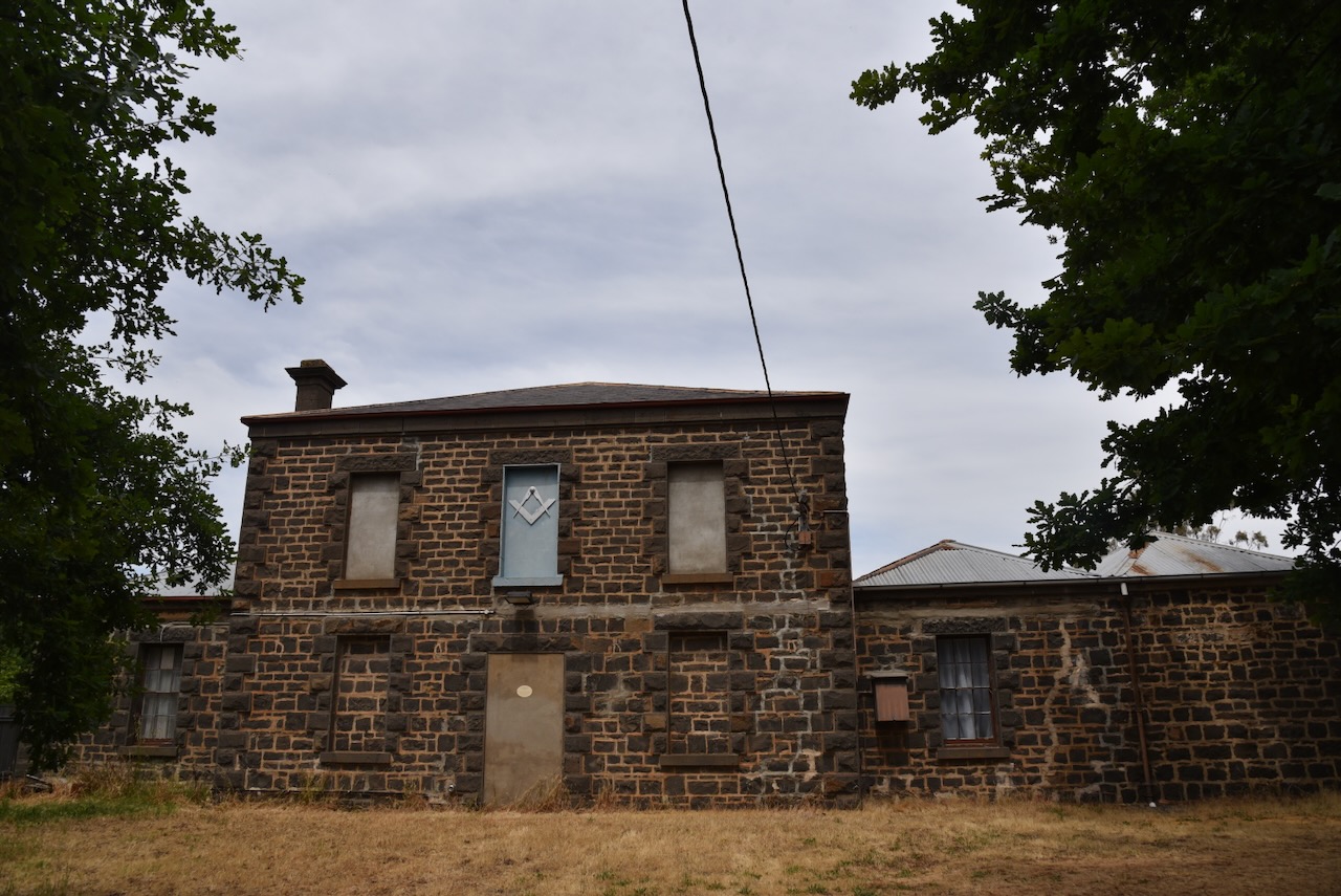 Our next stop was the very impressive Carisbrook Courthouse built in 1858. The first Petty Sessions at Carisbrook was held in 18521. The new bluestone courthouse was erected in 1858 for 1,992 pounds and used as a County Court, Court of Petty Sessions, and General Sessions. All court responsibility ceased in 1925 when the building was sold to the Masonic Lodge. They removed the galleries and verandah and bricked up the windows.