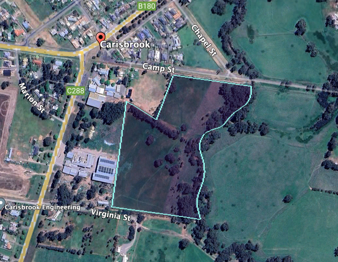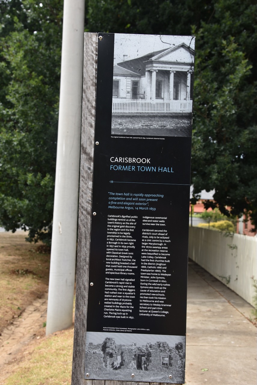 The town of Carisbrook was surveyed in 1851. The name’s origin is unclear. It has been suggested that it takes its name from ‘Carrie’s Brook’, named after Caroline Bucknall who was the daughter of an early pastoralist E.G. Bucknall. However, before the town survey, there was a police camp and lock-up named Camp Carisbrook. Other sources suggest it was named by Robert Hoddle in a memorandum he forwarded to Surveyor William Swan Uruqhart in July 1851, and that the name came from Carisbrooke on the Isle of Wight. (Aussie Towns 2024) (Victorian Places 2024)