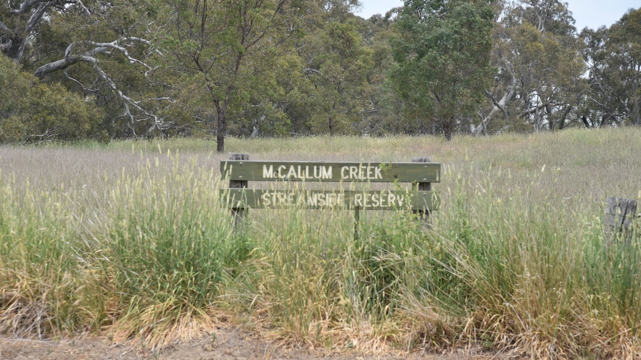 The Carisbrook Streamside Reserve VKFF-3642 is located on the southern side of Camp Street. The sign at the park shows ‘McCallum Creek Streamside Reserve.’