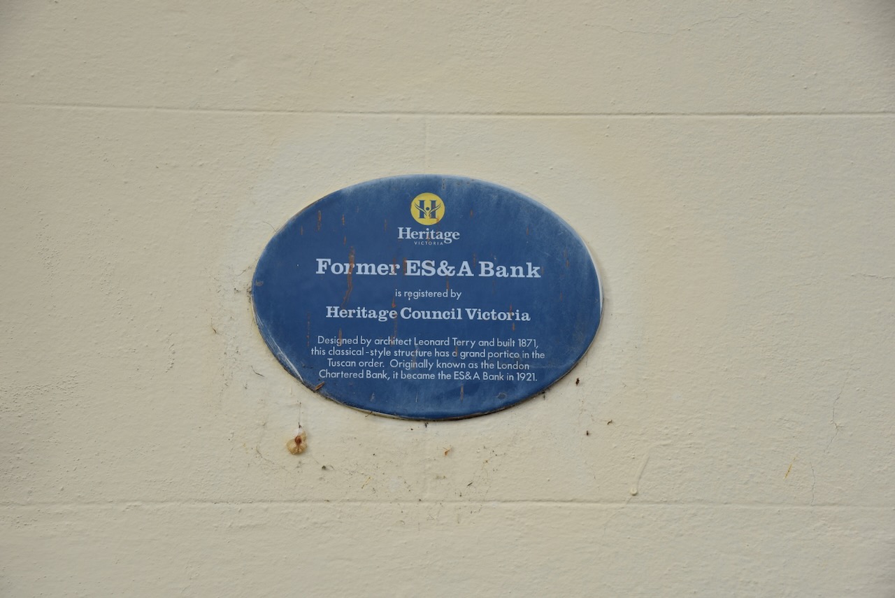 The English, Scotish and Australian Bank (ES & A) was built in 1871 and was designed by leading Melbourne architect Leonard Terry. He was responsible for the design of over 50 major bank branches in Victoria. Terry is regarded as one of the most important bank architects in Victoria at the time. (Heritage Council Victoria 2024) (Walking Maps 2024)