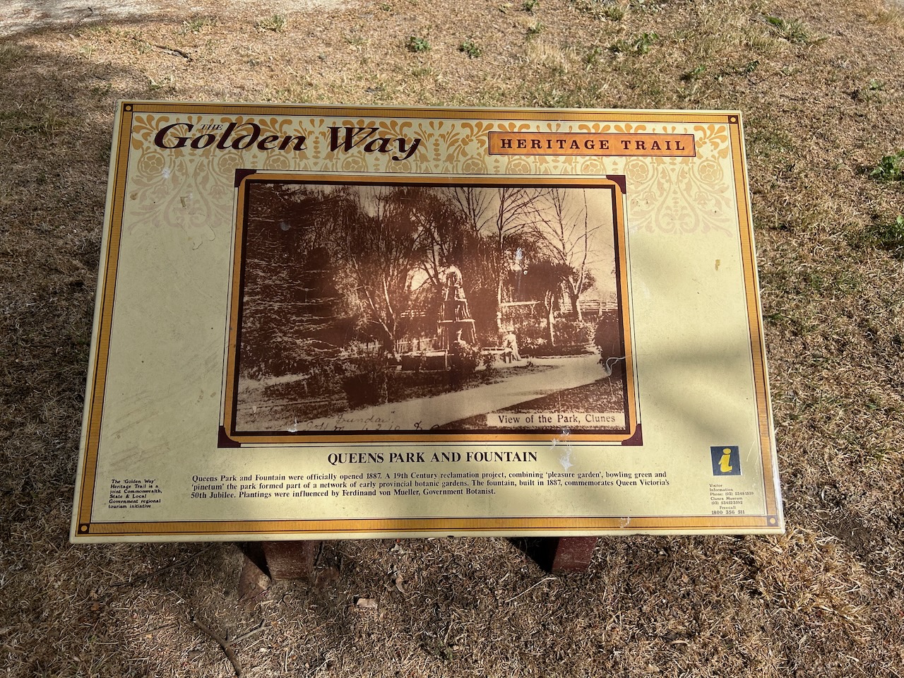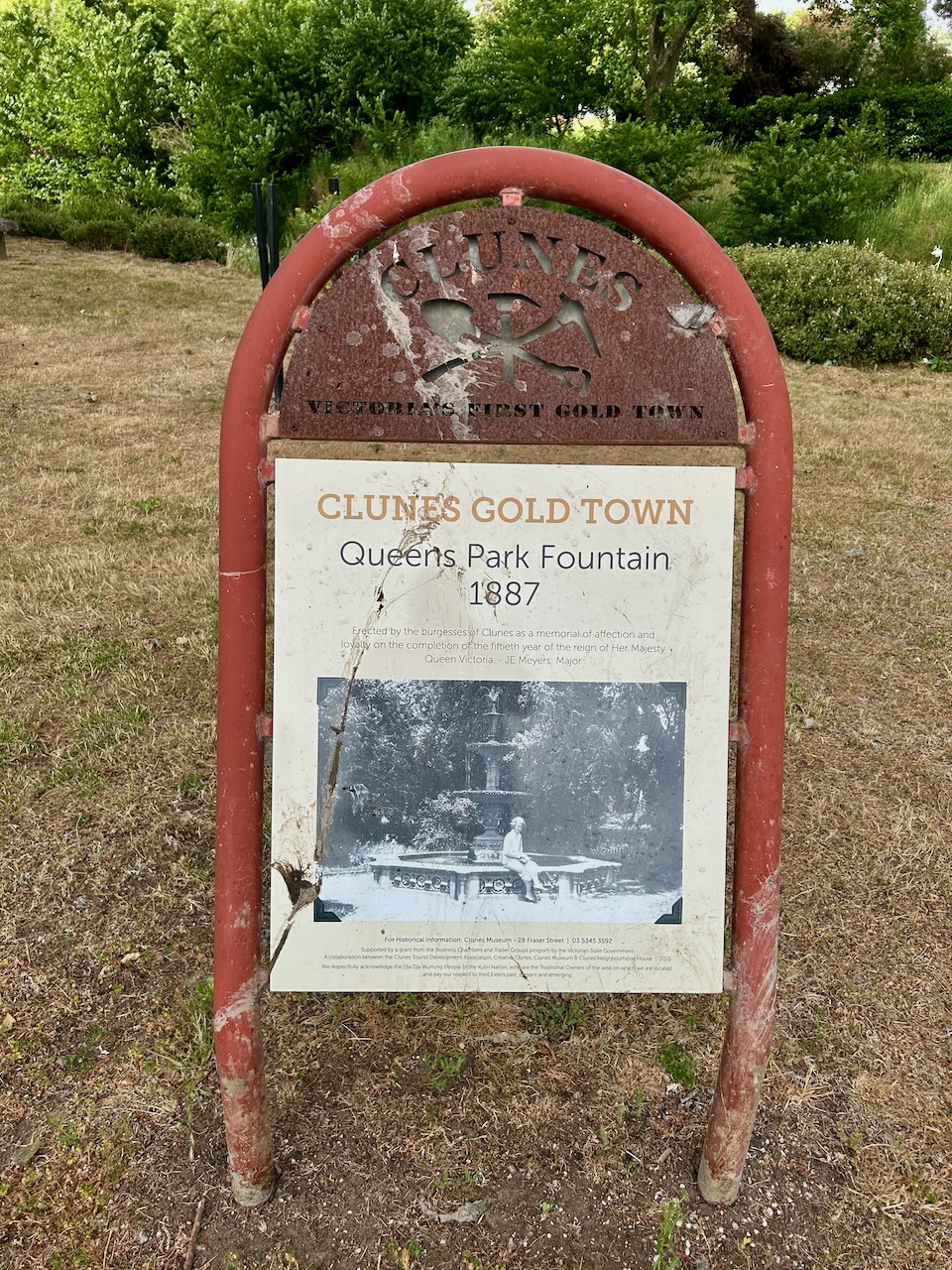 We then stopped in at Queens Park and the Queens Fountain which was erected by the Burgesses of Clunes as a memorial of affection and loyalty on the completion of the 15th year of the reign of Her Majesty Queen Victoria.
