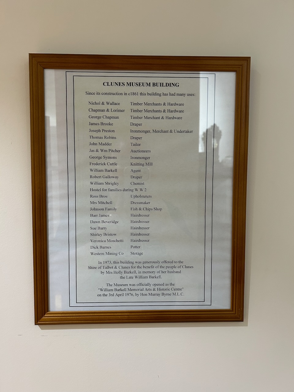 We then visited the Clunes Museum which is located in the former Nichol and Wallace Warehouse which was built in about 1858-1863.