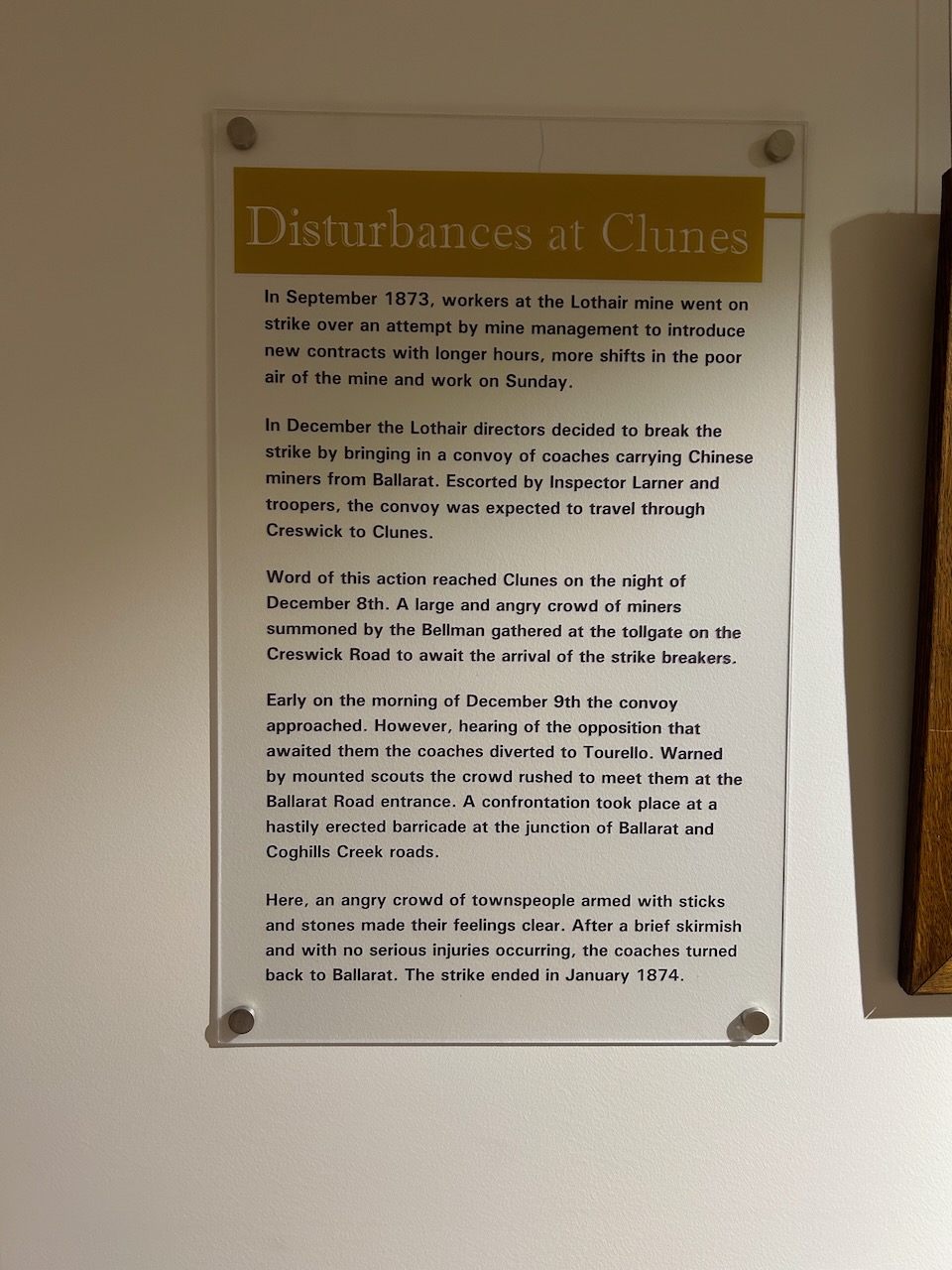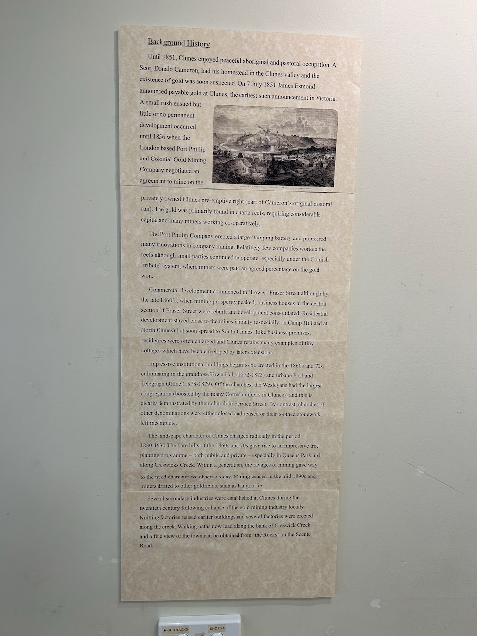 This is an excellent museum and contains a large selection of historical material from the Clunes district.