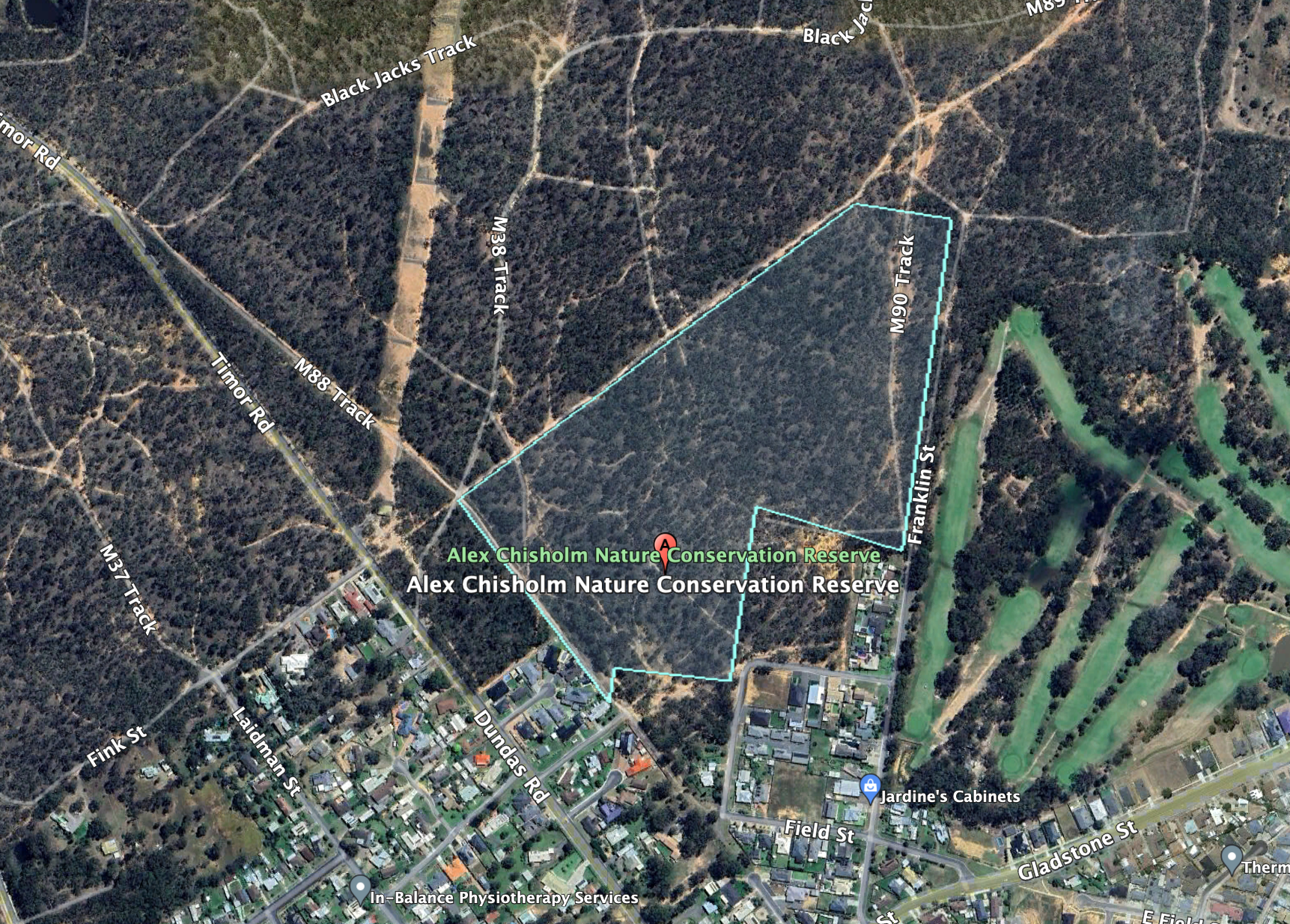 Above:- Map showing the location of the Alex Chisholm Flora Reserve. Map c/o Google Maps.