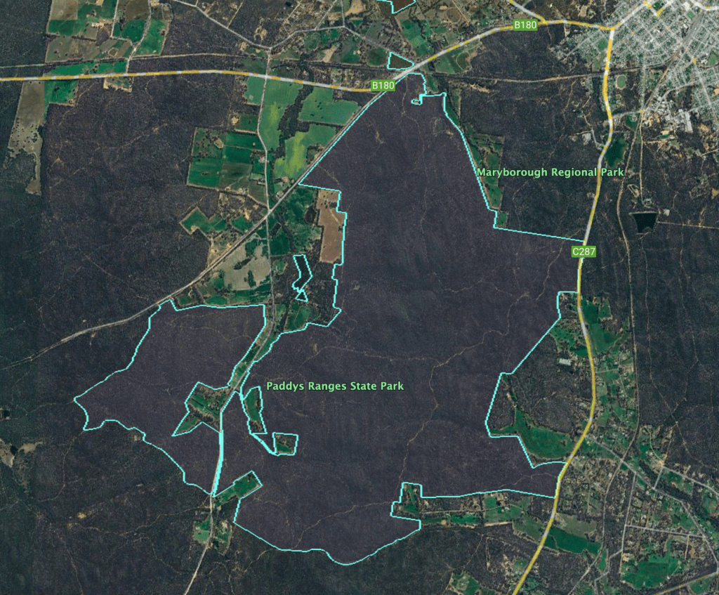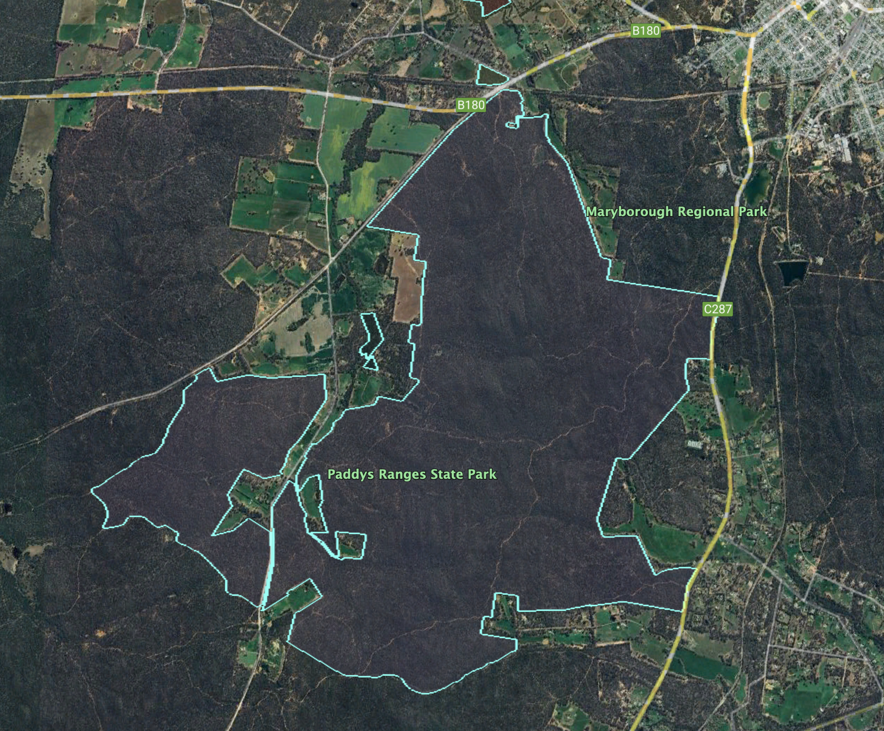 Above:- Map showing the location of Paddys Ranges State Park. Map c/o Google Maps.