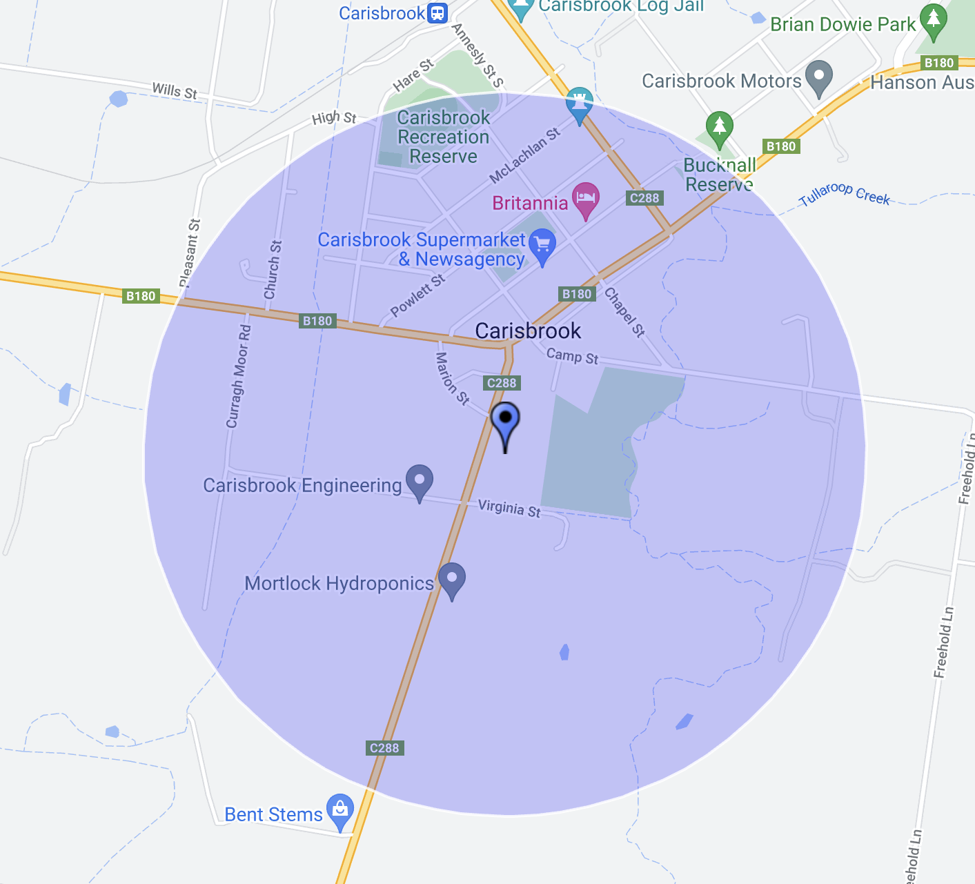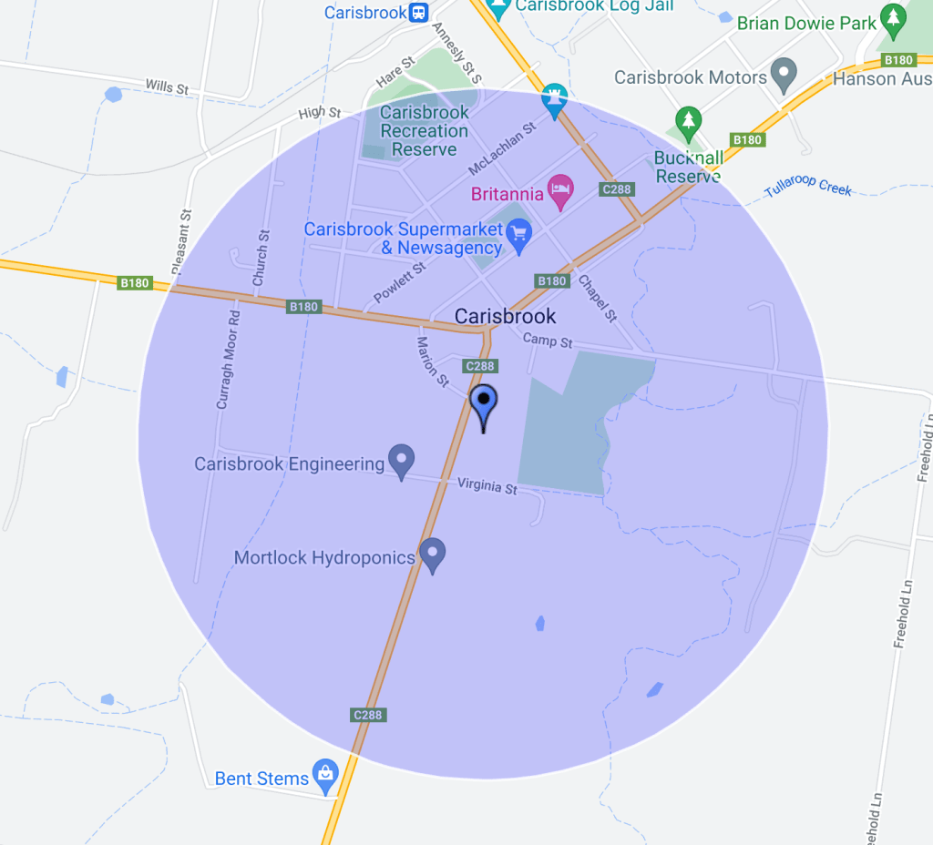 The first store at Carisbrook opened in 1853. By 1854 Carisbrook’s population was about 100 people. An Anglican church and school commenced in 1855. In 1856 local landowners Joyce and Simson opened a flour mill at Carisbrook. When the Borough of Carisbrook was proclaimed on the 7th day of August 1857, Carisbrook had several bakeries, a brewery, four hotels, brickyards and several stores. By the 1860s Carisbrook had a cricket club and a racecourse. (Aussie Towns 2024) (Victorian Places 2024)