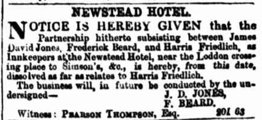 Martin Kelly built the hotel in c. 1856/1857 at a cost of £2,000. In June 1865 he fell while mounting or dismounting his horse hitting his head and died as a result. He was just 48 years of age. His father-in-law Thomas Coonan built the Shamrock (later Brittania Hotel) at Carisbrook. The Carisbrook Hotel closed on the 31st day of December 1915. (Carisbrook Historical Society Facebook 2024)