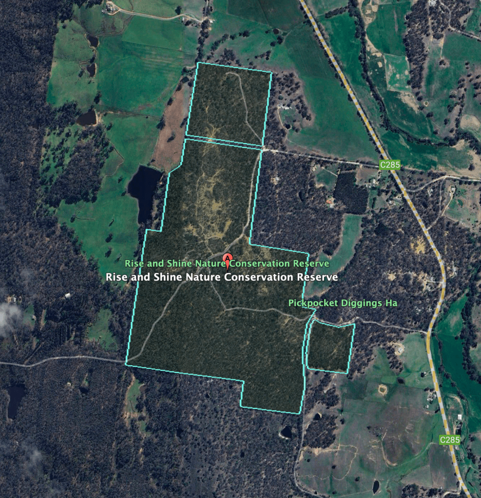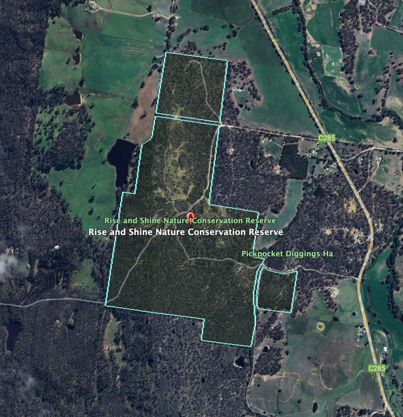 Above:- An aerial view of the Alex Chisholm Flora Reserve. Image c/o Google Earth.
