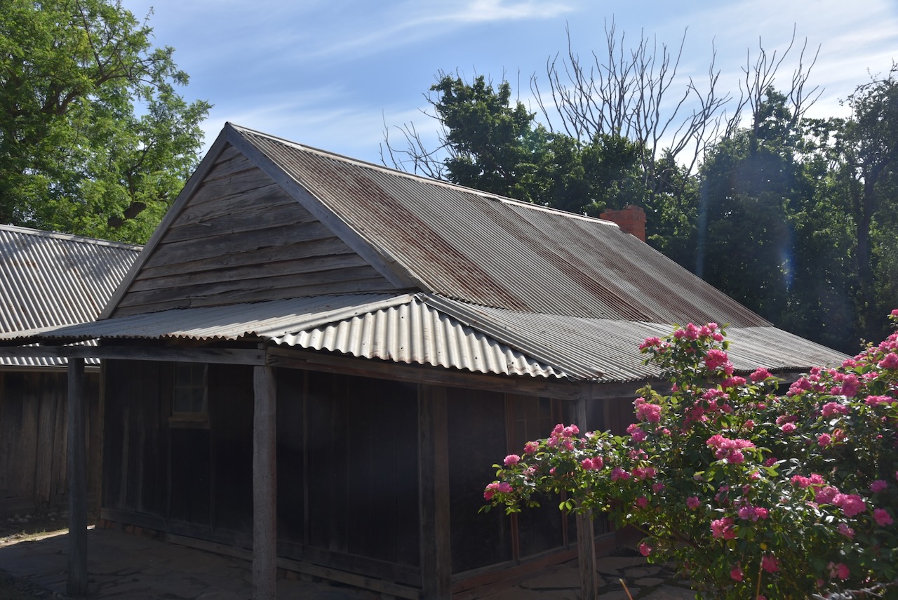 James Daly was born in 1826 in Limerick, Ireland. He emigrated to Australia and married Eliza Martin in 1863. They had six children. James built Daly’s Cottage in 1865. The walls of the cottage are built from fiddle-back red gum located in the district and cut by the men. The red gum was then smoothed out by the women with adzes. An adze is an ancient cutting tool similar to an axe however the cutting edge is perpendicular to the handle rather than parallel. Handmade bricks were used on the pantry floor and the walls were lined with newspaper, hessian, and wallpaper. The cottage was lived in until the 1930s. (ancestry.com 2024) (Melbourne Playgrounds 2024) (Wikipedia 2024)