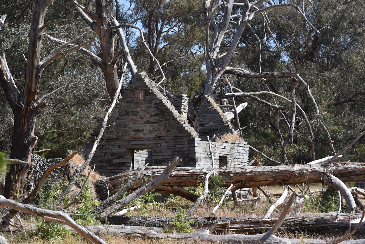 We also stopped to have a look at the old Slate dairy. There were several slate mines in the Percydale area. Thomas Lane Hellings (b. 1854. d. 1927) used locally quarried slate to build the dairy. (Melbourne Playgrounds 2024)