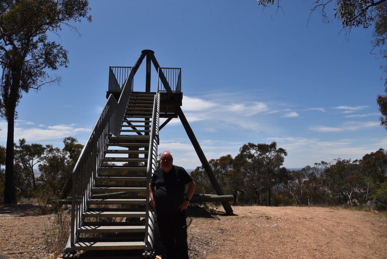 After the activation Marija and I drove to Governor Rock and the lookout tower. Along the way, we enjoyed some magnificent views of the local vineyards with the mountains in the background.