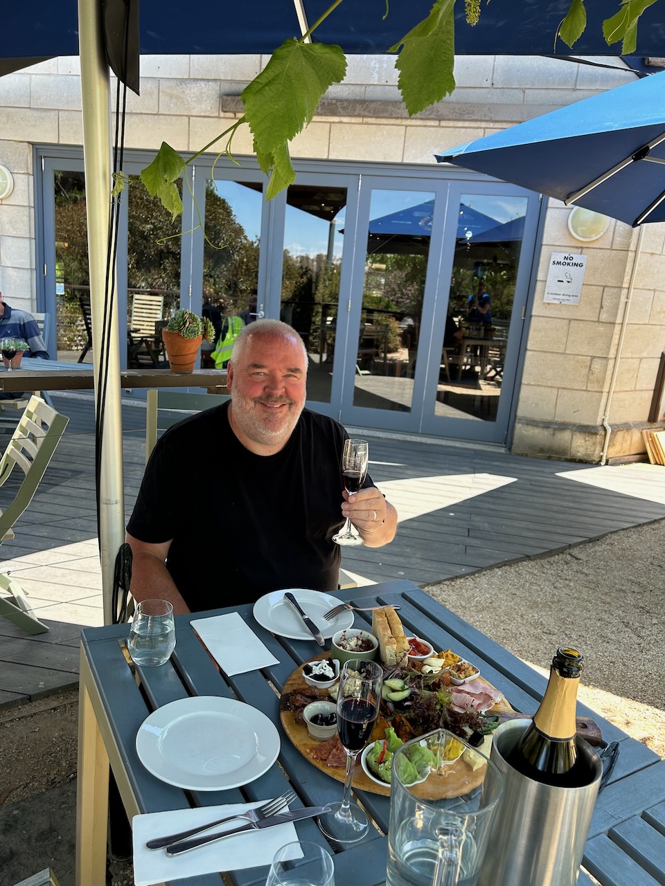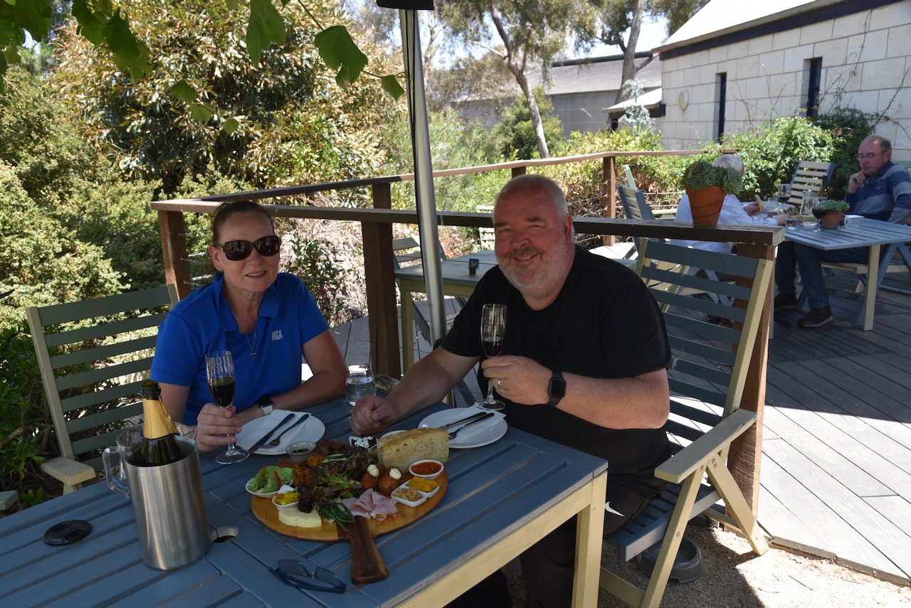 It was time to get some lunch and Marija and I decided to call into the Blue Pyrenees Winery. We enjoyed a few glasses of sparkling red and a magnificent platter of cold meat, cheeses, dips, etc.