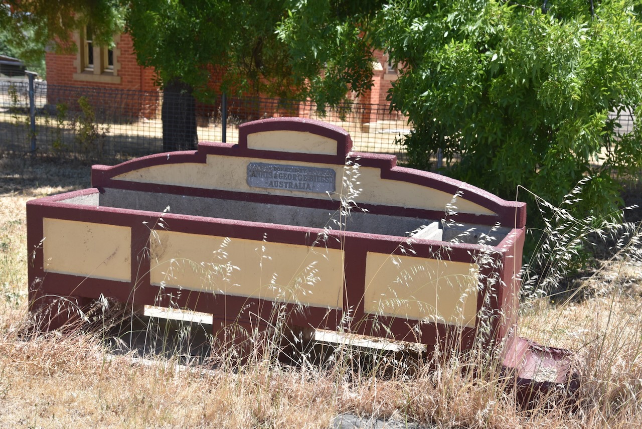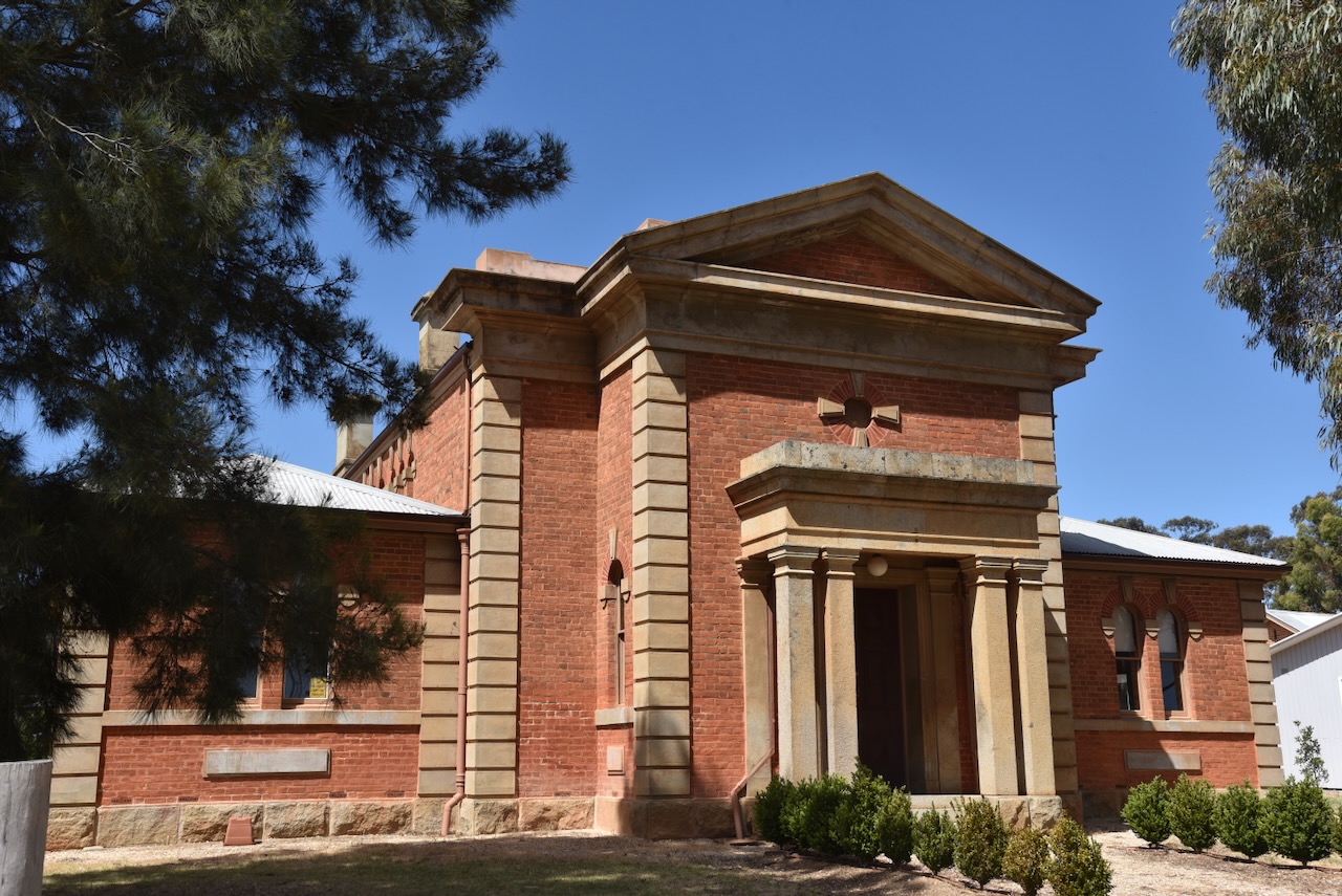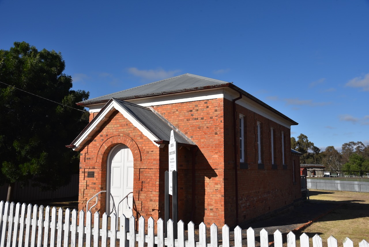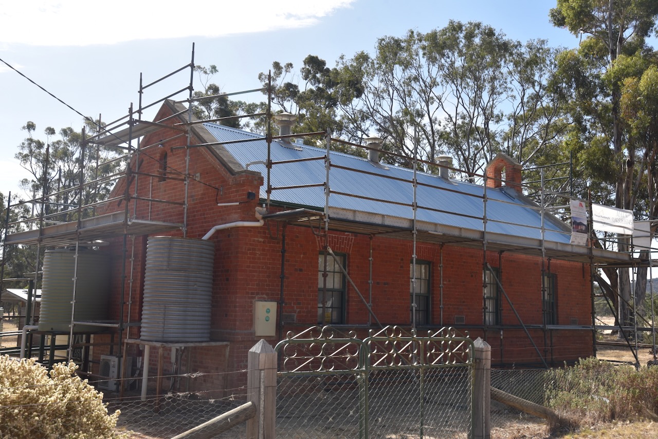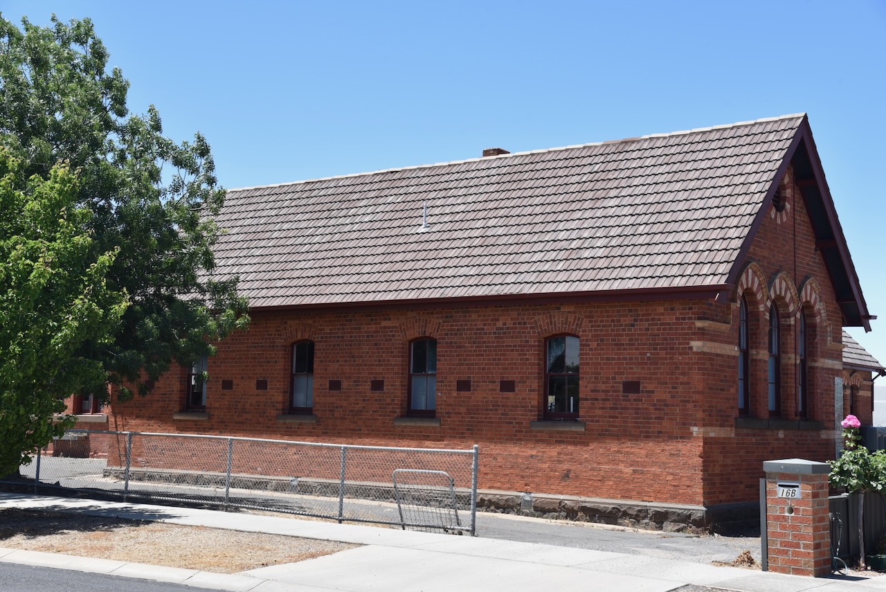The Moliagul Common School was built in 1862 of locally made red brick. The first Head Teacher was Thomas Flynn. The school closed in 1970. It was under restoration during our visit.