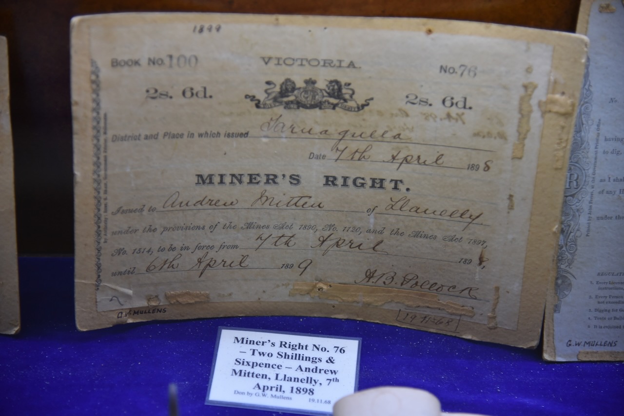Gold was discovered at Queens Gully in the Moliagul area in late 1852, resulting in a gold rush in the district. In 1853 a police camp was established to keep law and order among the thousands of miners who were seeking their fortune. The police camp included a Sub Inspector, two Sergeants, a Corporal, six mounted and twelve-foot Constables, a Postmaster, a Clerk and a Tent Keeper. By January 1853 there was a store, a butcher’s shop and a blacksmith’s shop. The first Gold Commissioner’s camp in the district was set up, with Commissioner William Templeton issuing the gold licences. (Bannear 1980)