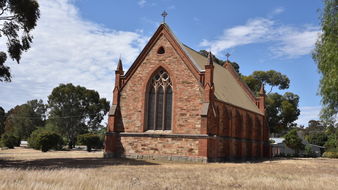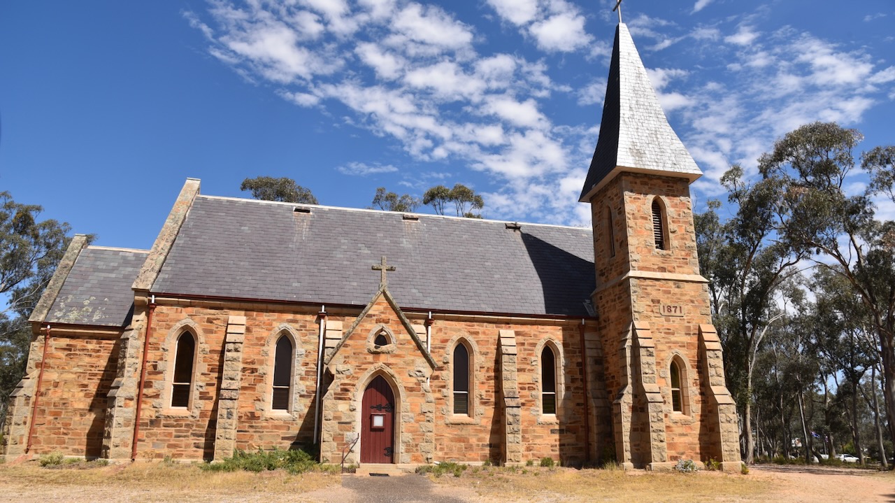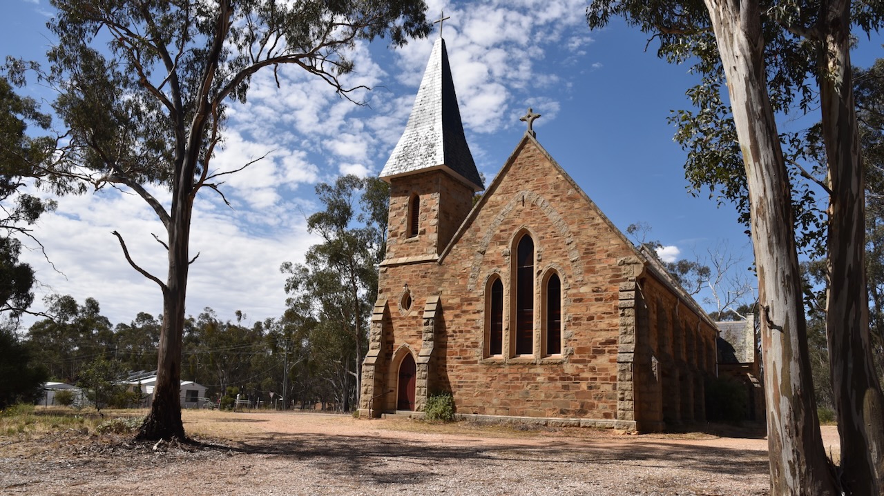 The Moliagul Anglican church was built between 1864 to 1865. (Aussie Towns 2024)