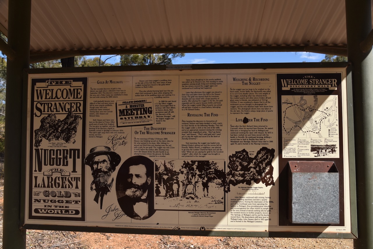 There is an excellent information board and a monument at the site where the Welcome Stranger was discovered.