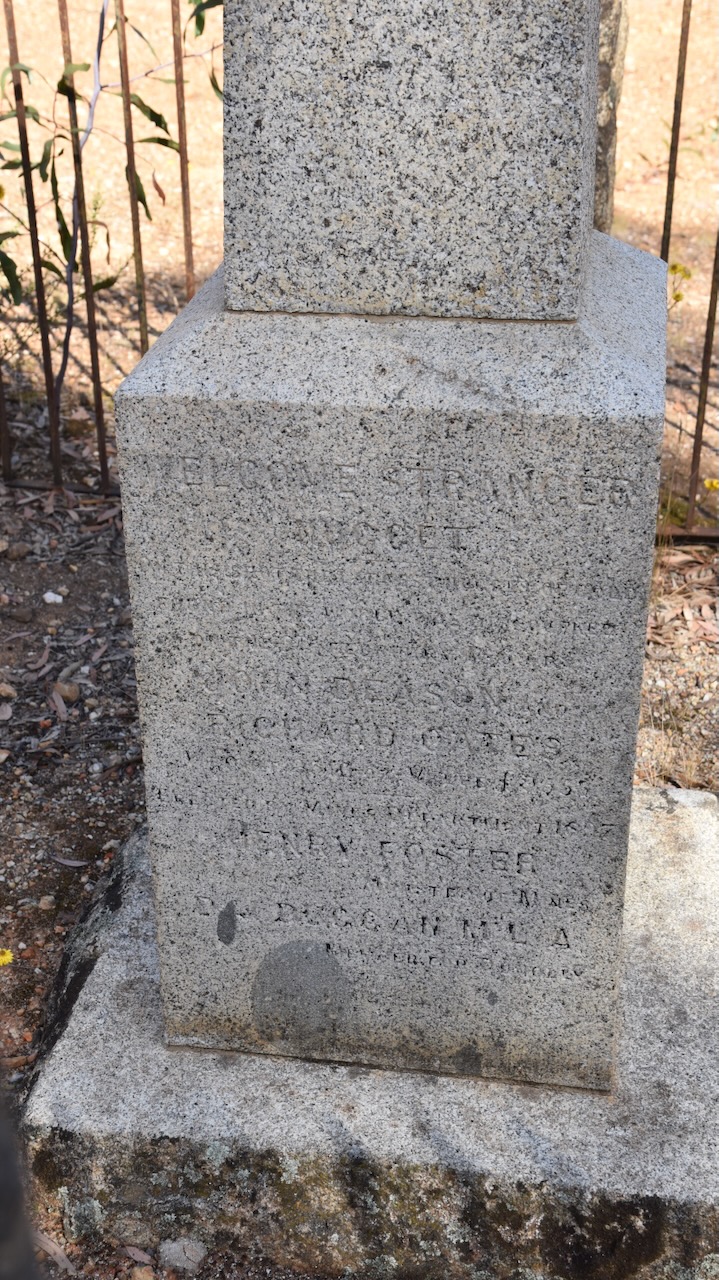 Following the find of the Welcome Stranger, Richard Oates returned to Cornwall and married Jane Blewett Penrose in November 1870. He returned shortly after to Moliagul and continued to work on the claim with Deason. By 1875 Oates had moved to Dunolly with his family. He later moved to Bealiba. Richard and Jane had four children. He died on the 31st day of October 1906 at age 79. He is buried in the Marong cemetery. There is a monument at the cemetery commemorating the life of Richard Oates. (ancestry.com.au 2024) (Monument Australia 2024)