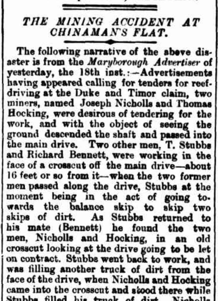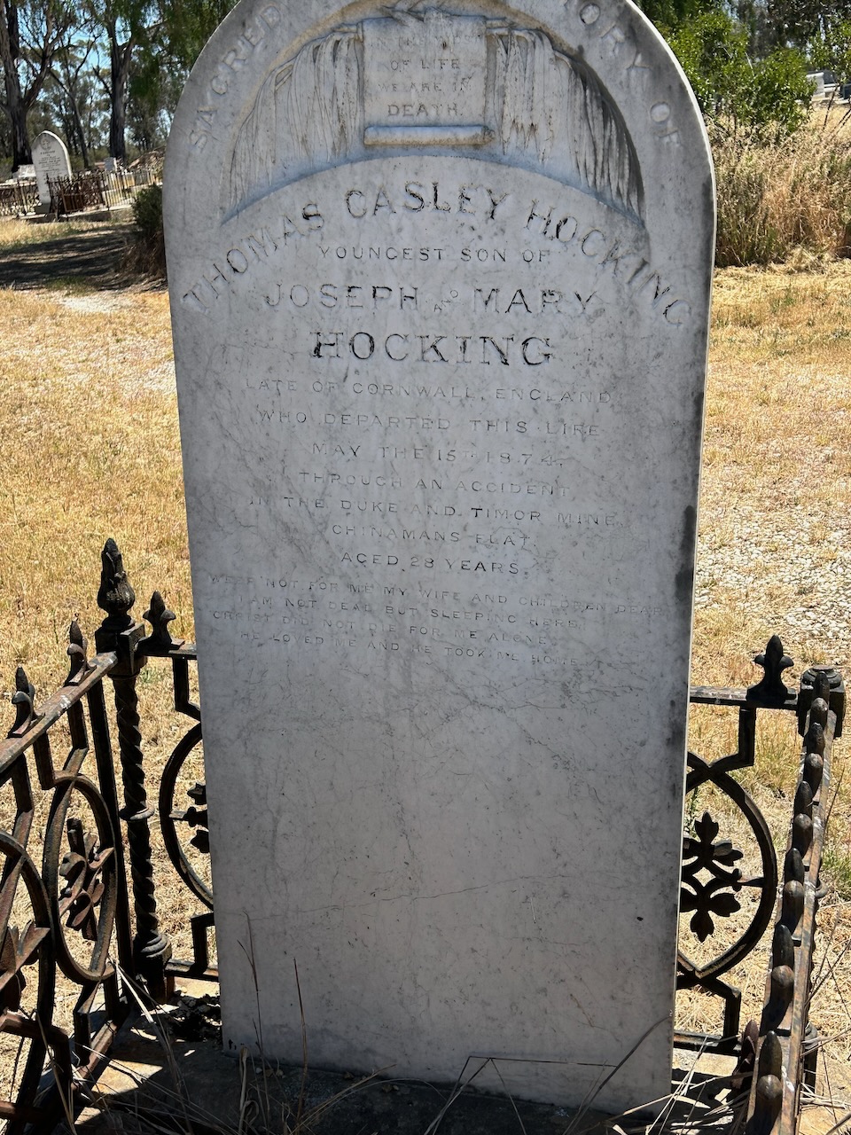 It is believed that John and Richard had known each other from boyhood in Cornwall and had been choirboys together in Cornwall. They spent some time in Bendigo seeking gold but were unproductive and moved to Moliagul. (Rootsweb 2021)