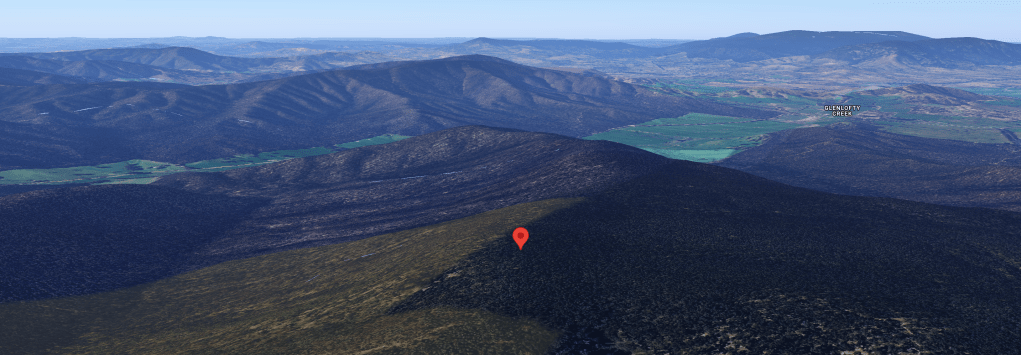 Above:- An aerial view of Mount Moliagul looking south. Image c/o Google Maps.