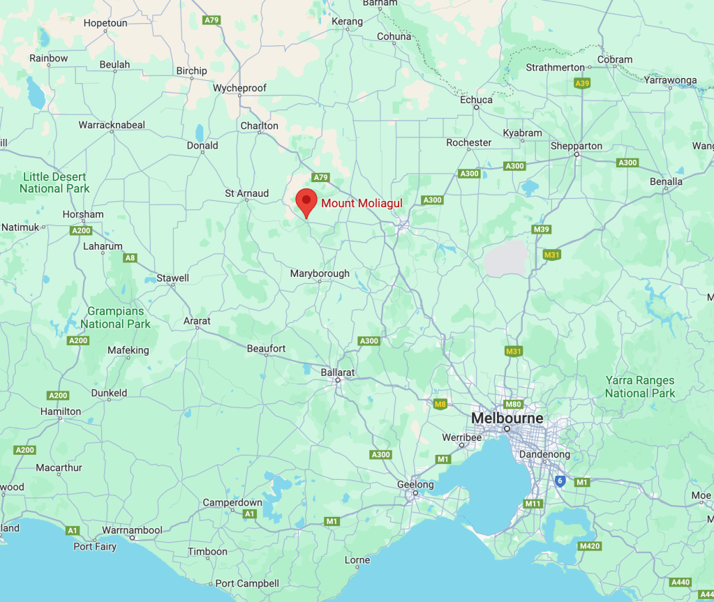 Our next activation for 22nd November 2023 was Mount Moliagul VK3/ VN-024 for the Summits On The Air (SOTA) program. Mount Moliagul is located about 21 km north of Dunolly and about 203 km northwest of Melbourne.